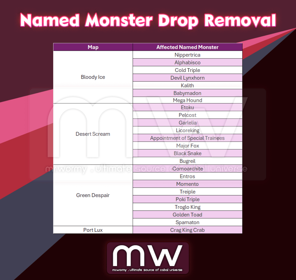 2. Delete unique equipment drops from some field monsters due to the introduction of the Newbie Support feature.