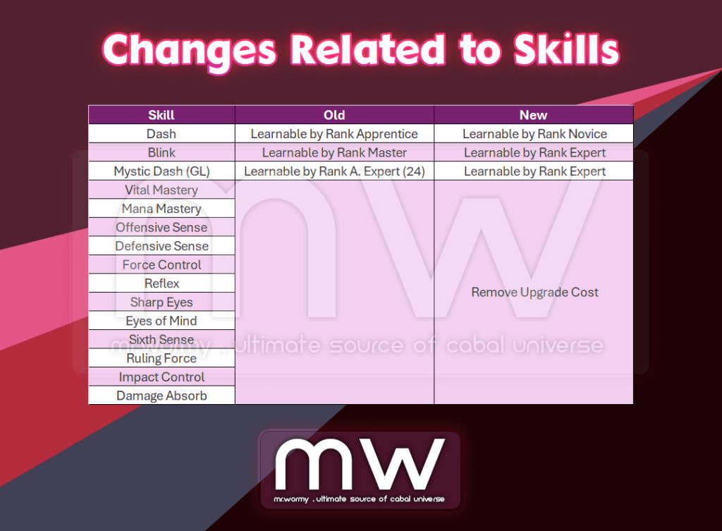 - Changes of Special Mastery Passive EXP / Level / Stats.