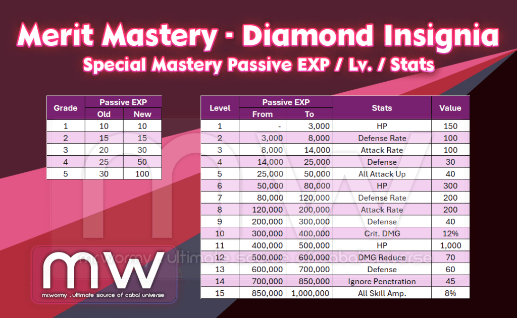 5. Changes related to Merit Mastery – Diamond Insignia