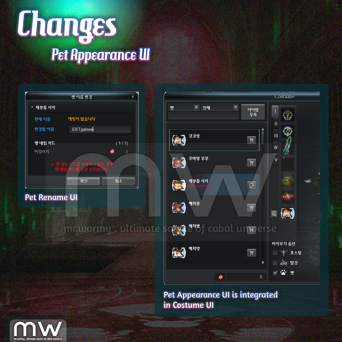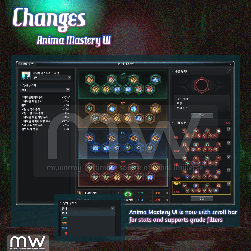 1. Changes of Pet Appearance UI / Anima Mastery UI: