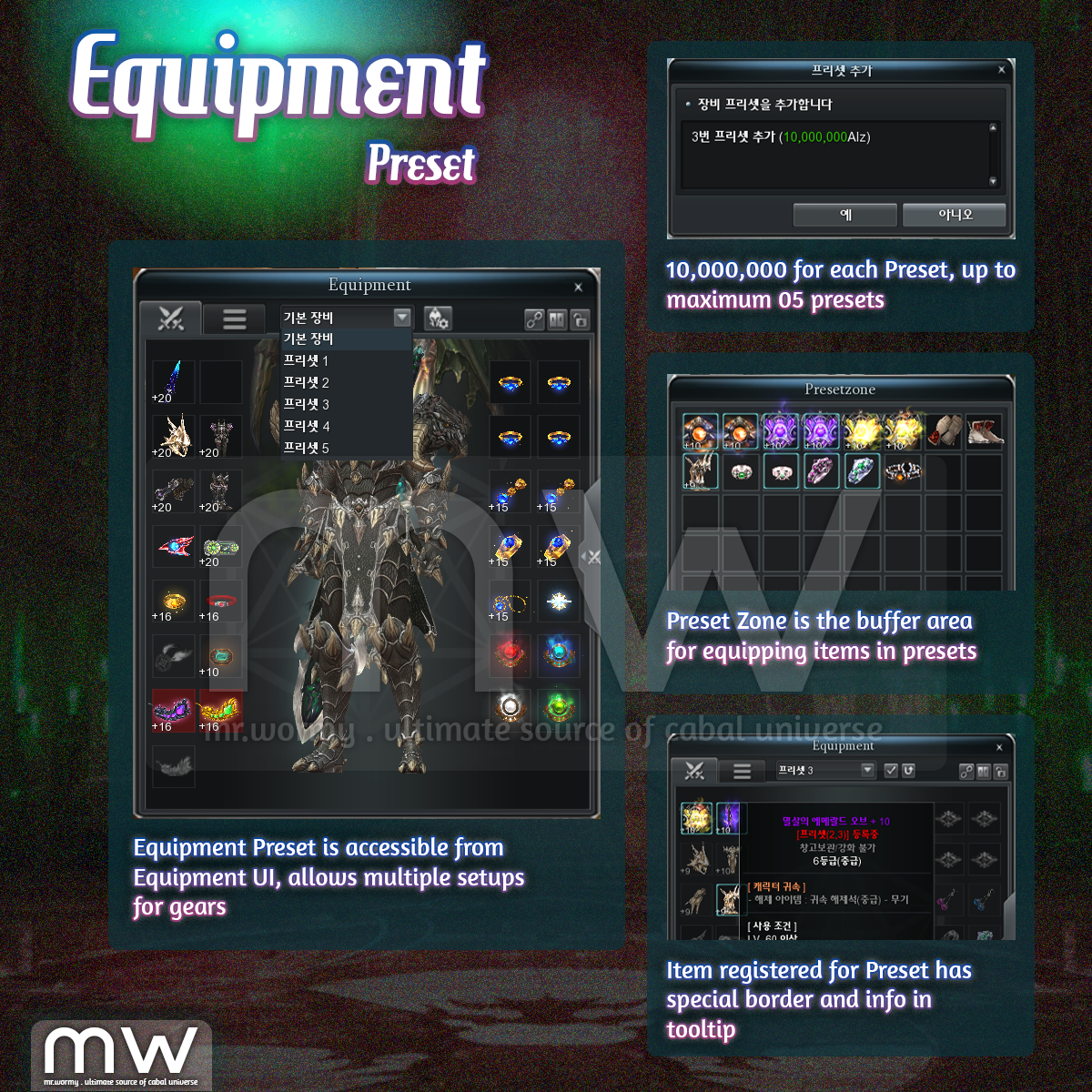 - A new intermediate UI “Preset Zone” is added as the middle-layer for registering for Equipment Presets.