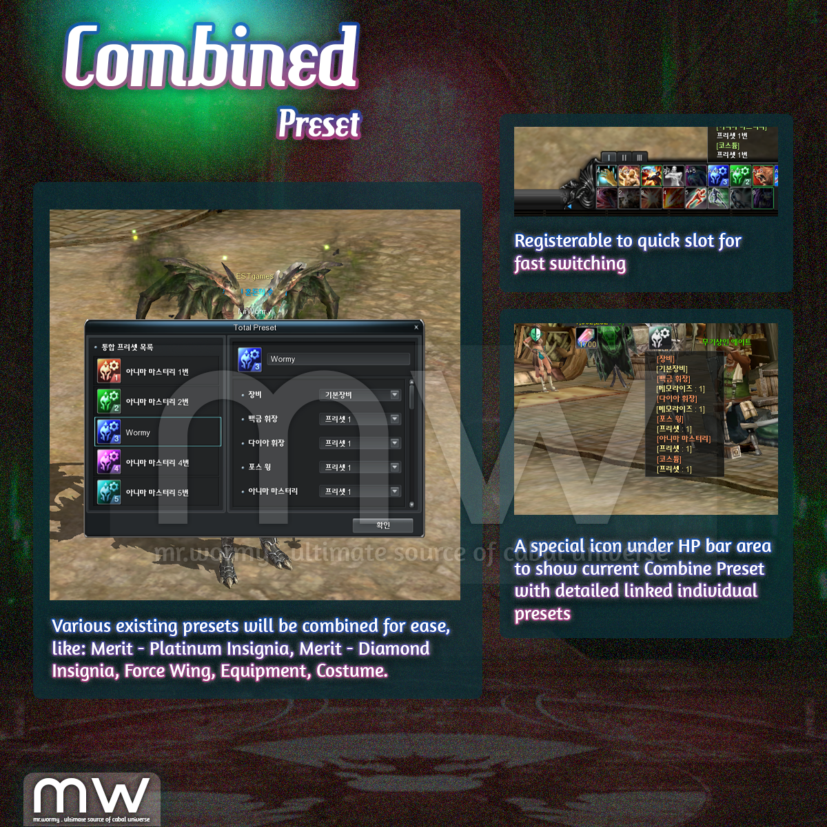 - A Combine Preset icon will be displayed under your HP Area.