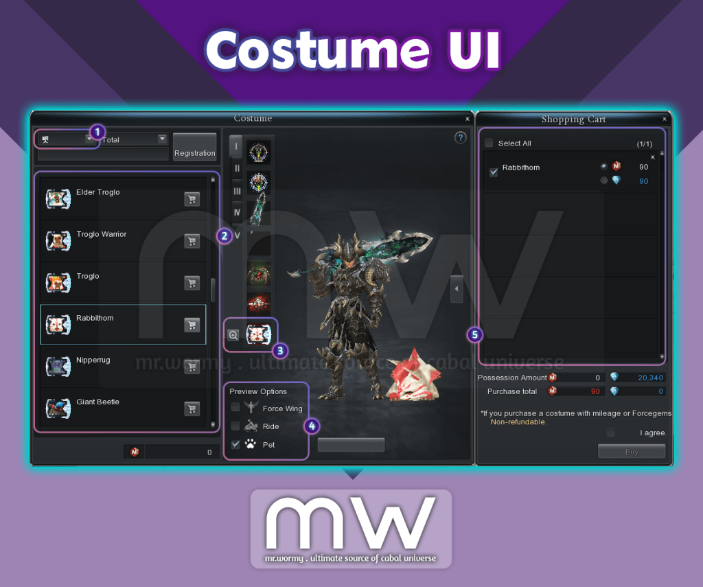 - [5] Able to purchase Pet (appearance) via Costume UI
