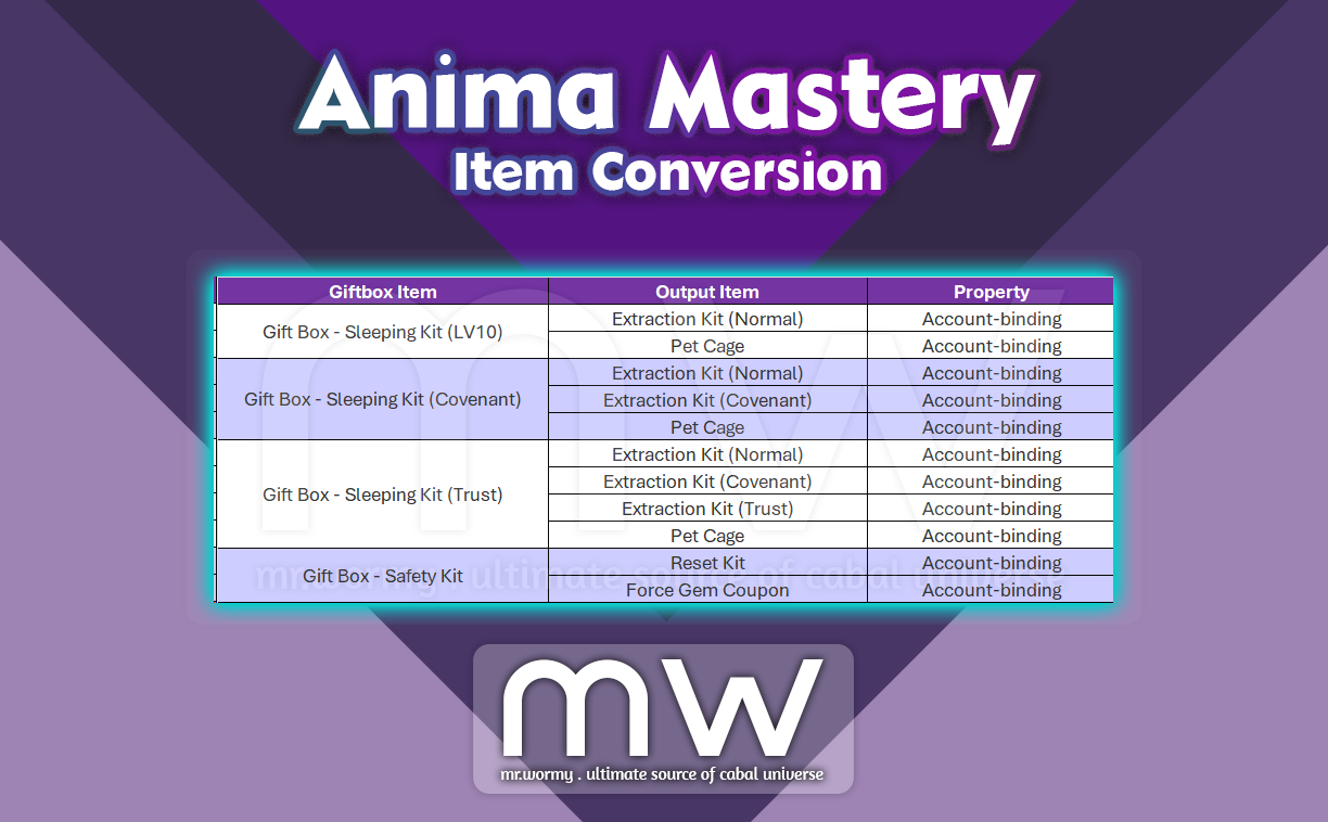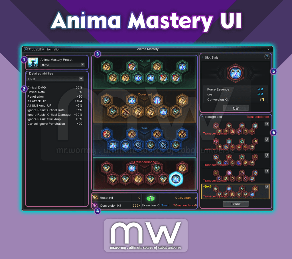 - 01 Conversion Kit will be consumed for resetting a single slot in Anima Mastery.