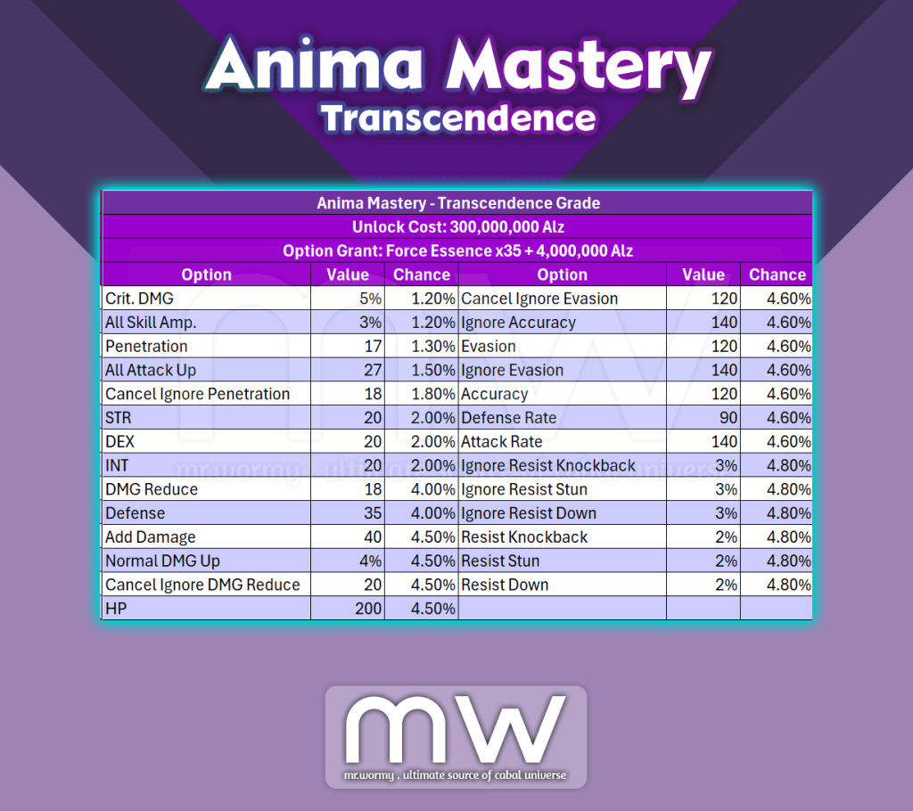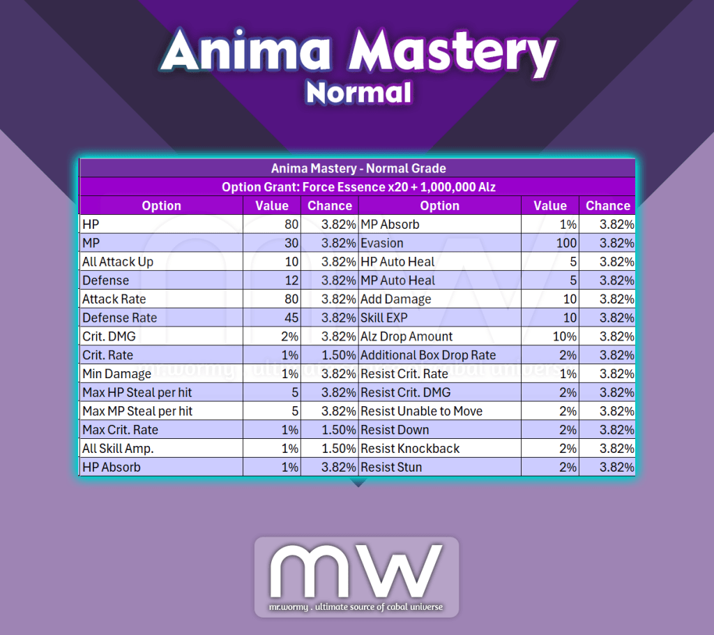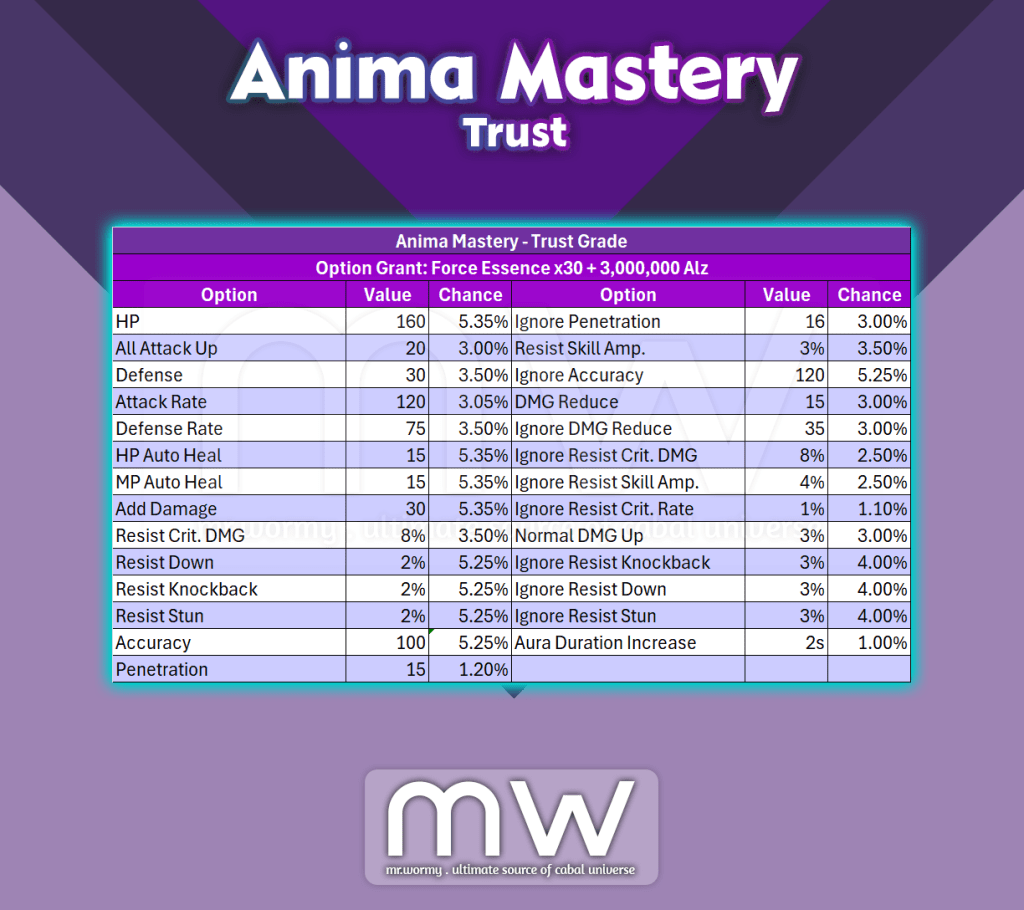 - The “Anima Mastery” system is applicable for all characters in the same account.