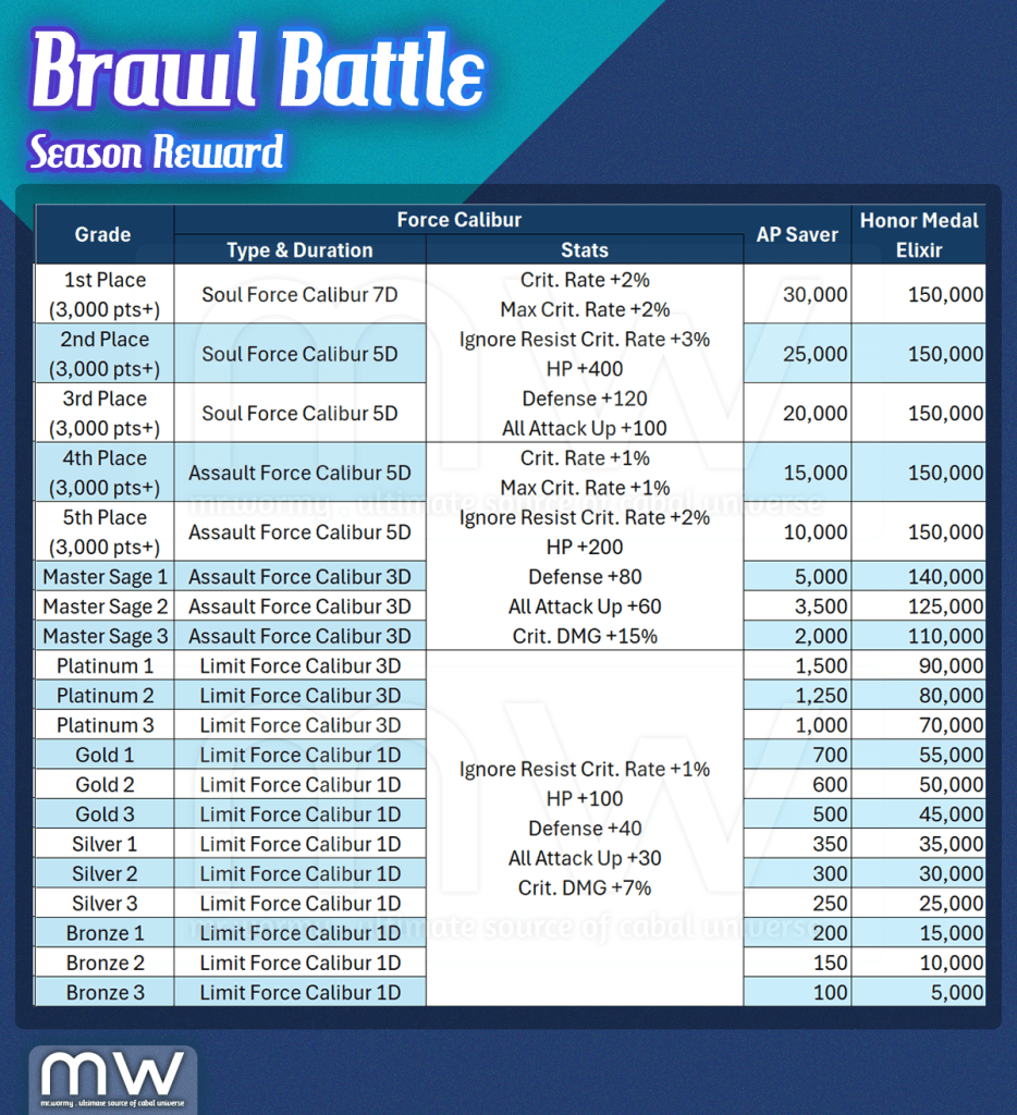 - Force Calibur, AP Saver, Elixir of Honor Medal are Character-Binding