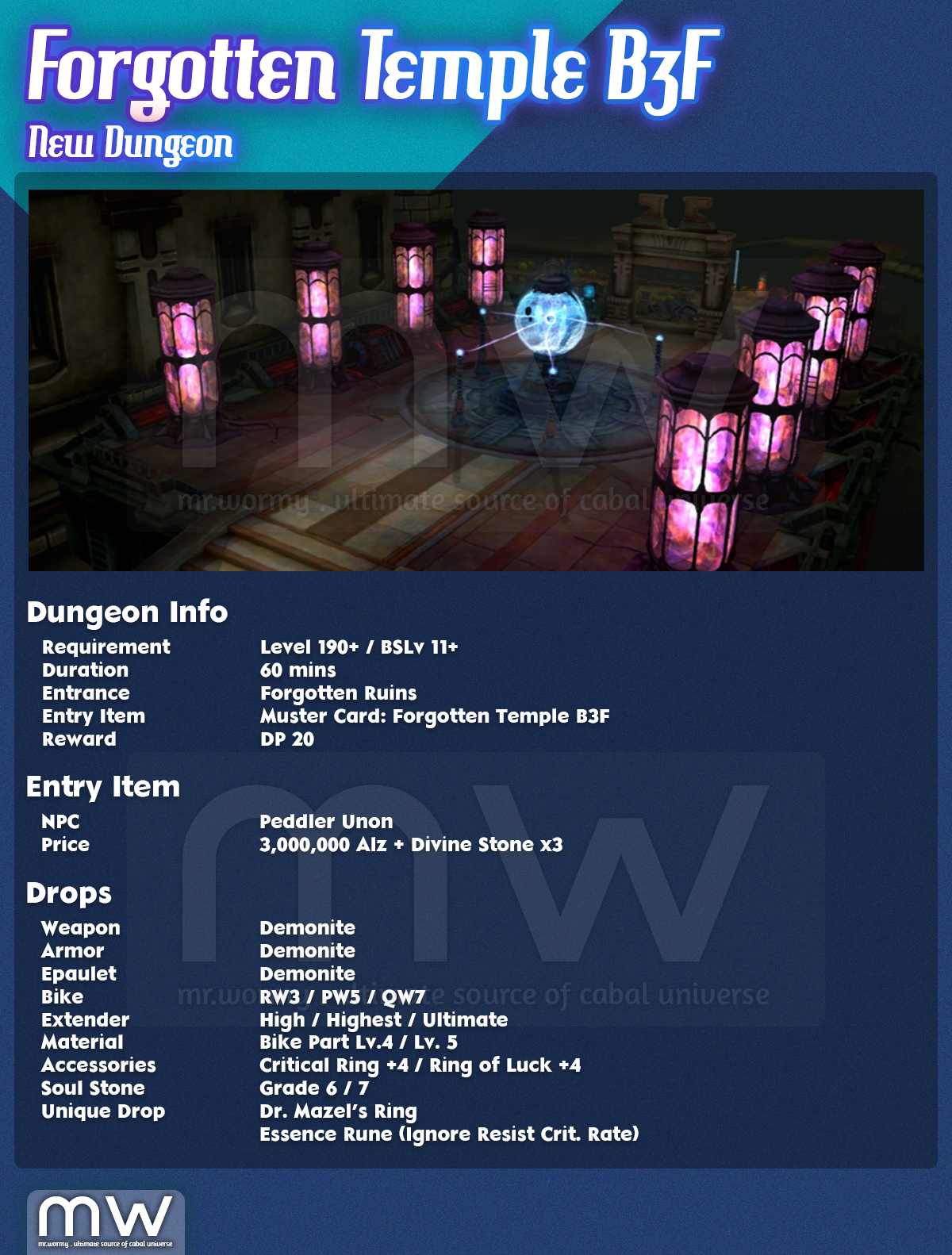 1. Fixed the bug that caused certain boxes inside the Forgotten Temple B3F dungeon were showing even before the linked bosses were defeated.