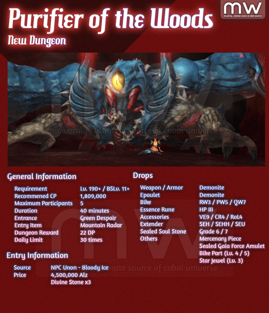 4. Add 5 collections to the dungeon tab for the new dungeon “Purifier of the Woods”