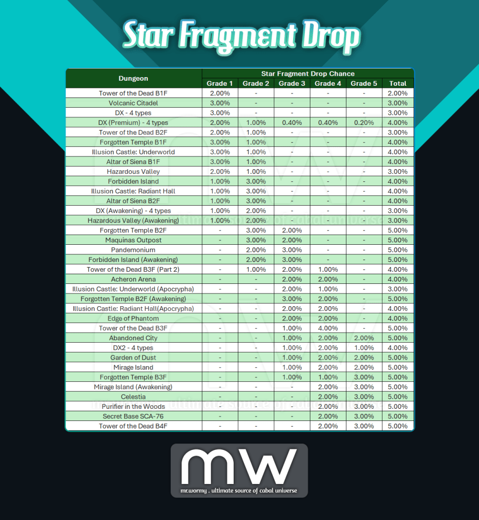- Star Crystal of the equivalent grade is generated randomly upon opening Star Fragment