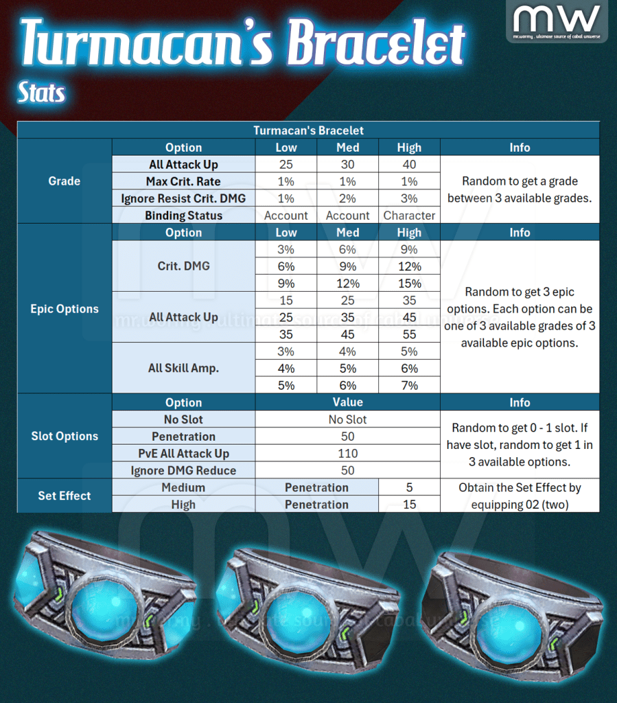 - Change the Grade Identification of Turmacan’s Bracelet from G14 to G15.
