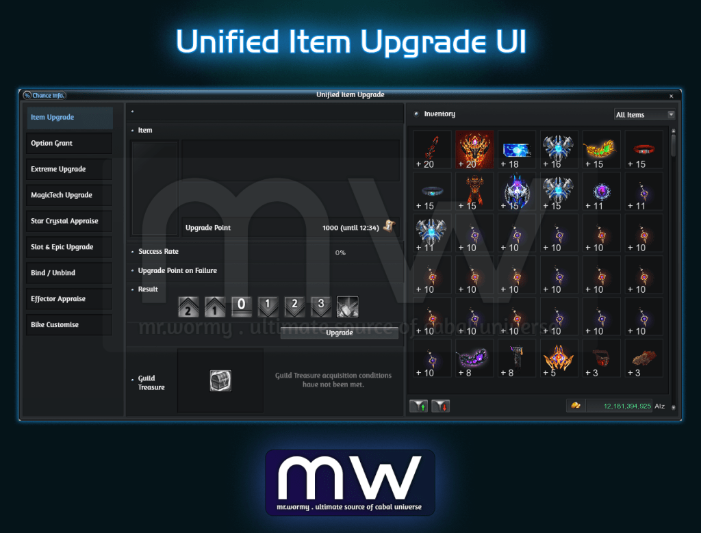 - Change the button name from “Item Upgrade” to “Unified Item Upgrade”.