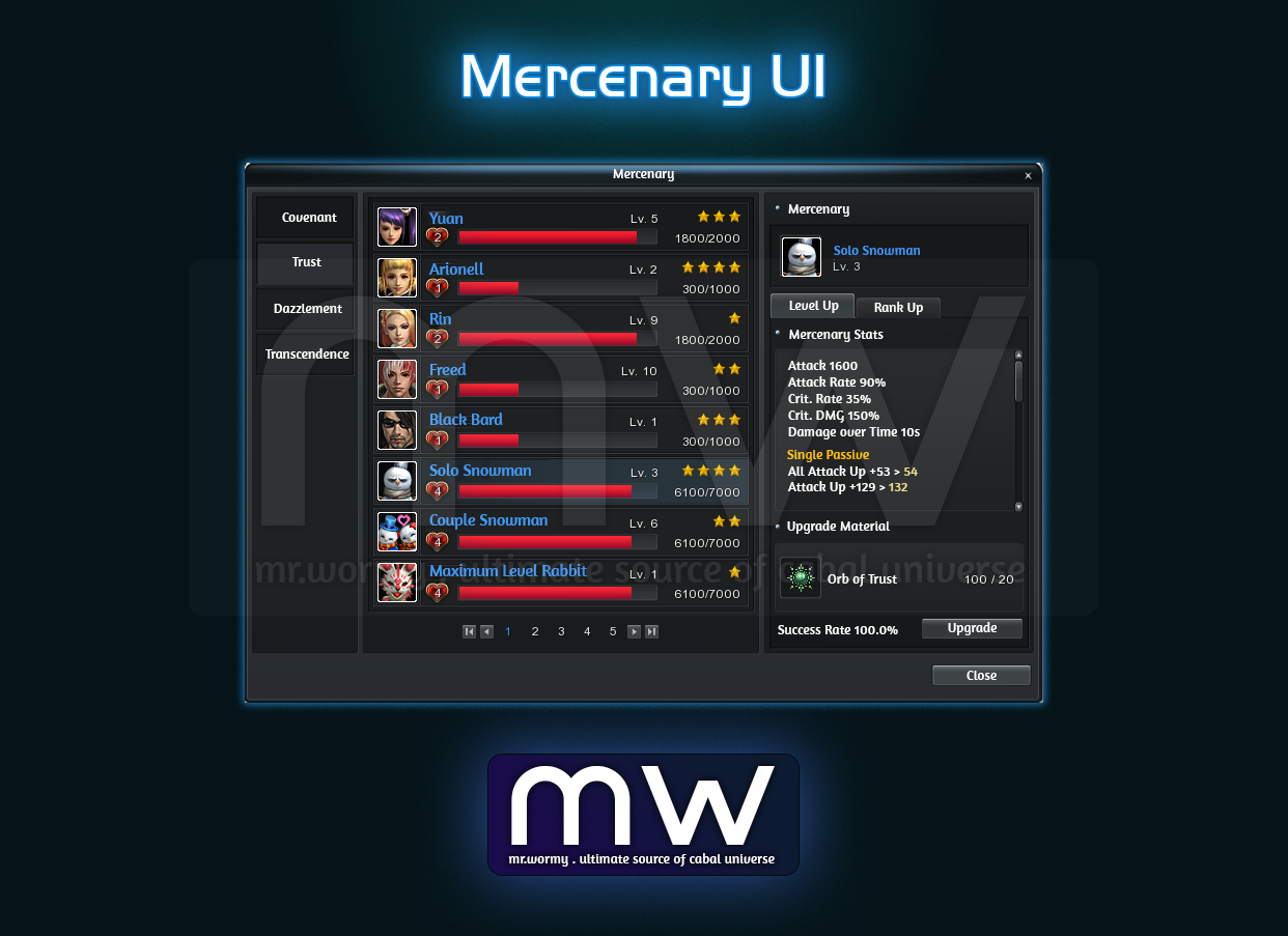 2. Added the Level Up and Rank Up for some Mercenaries: