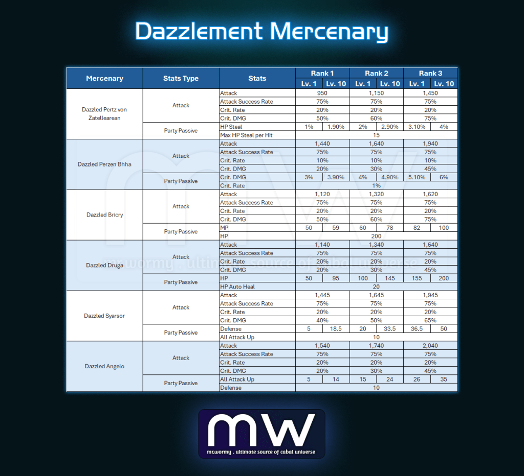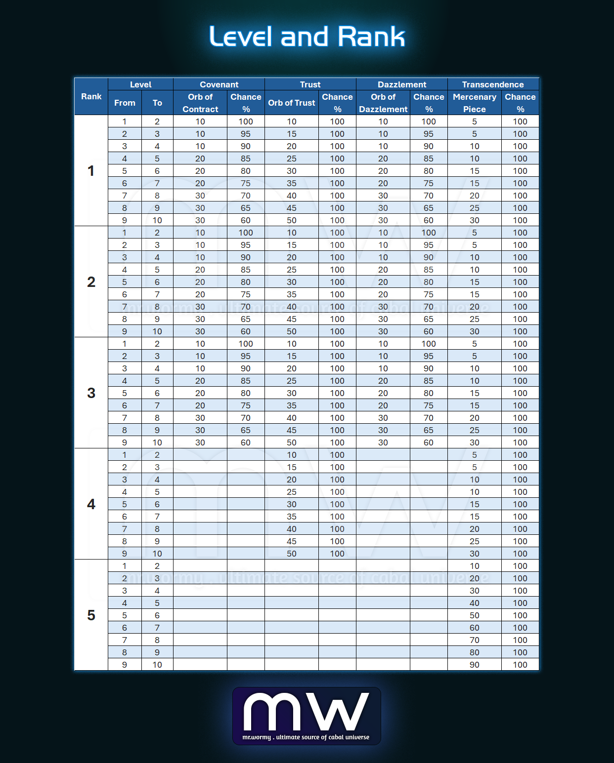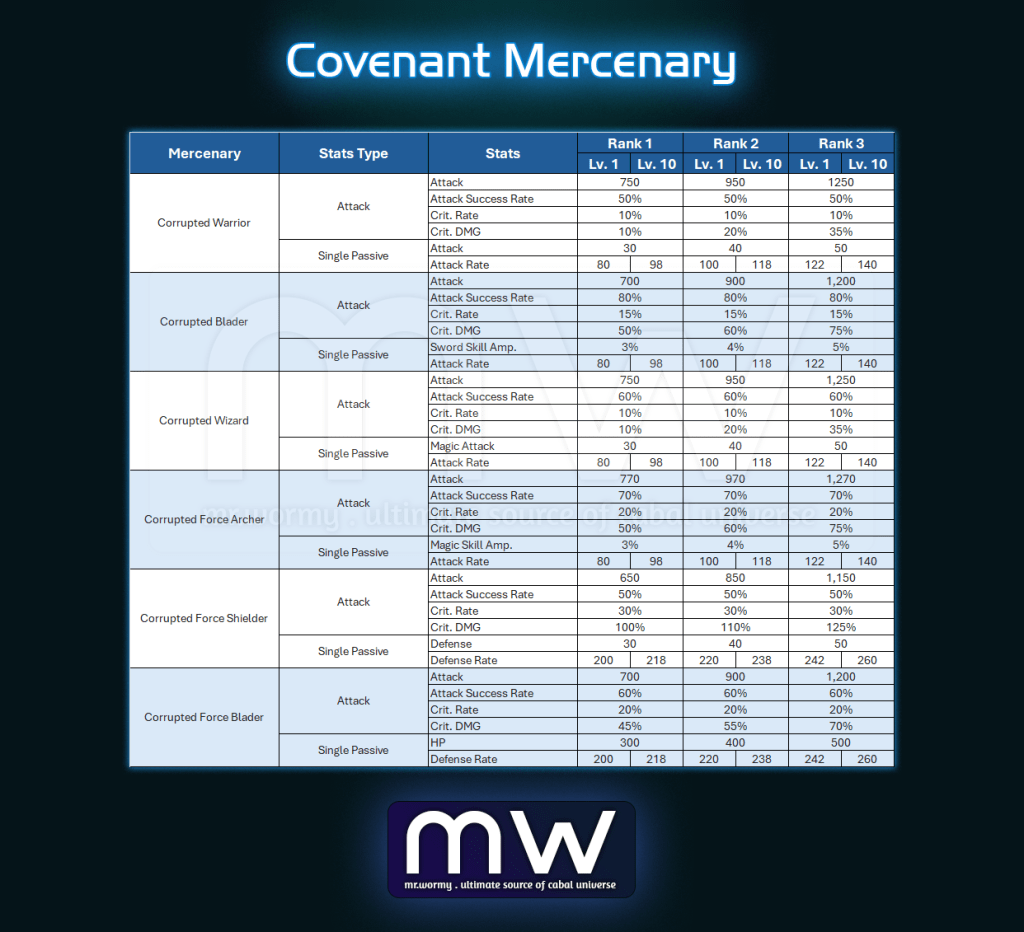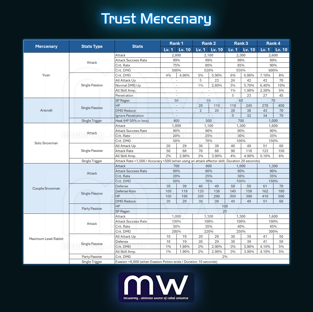 - When a Mercenary reached level 10, it can be ranked up to next Rank with 100% success rate.