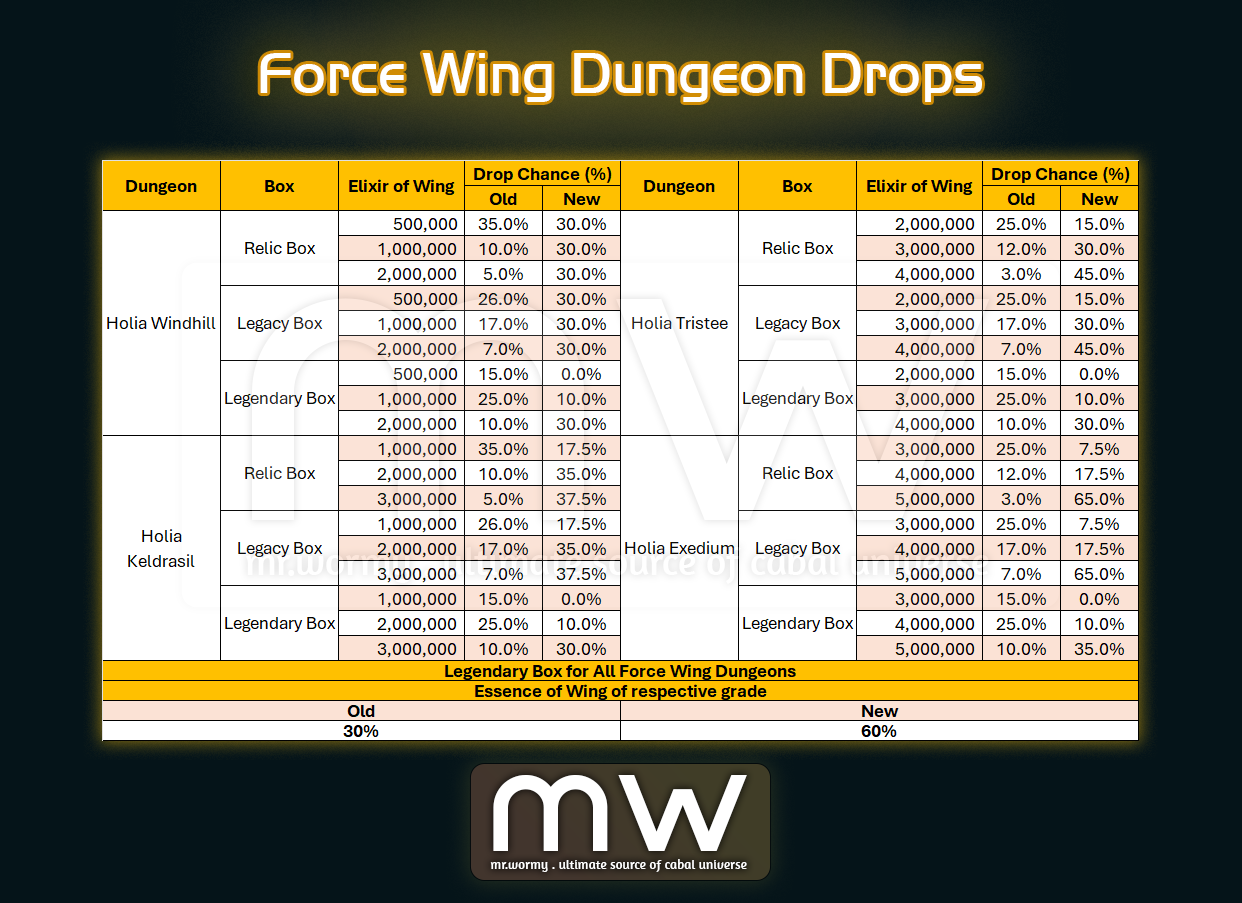 - Essence of Wing (Master) can be obtained from new Force Wing Dungeon: Holia Exedium