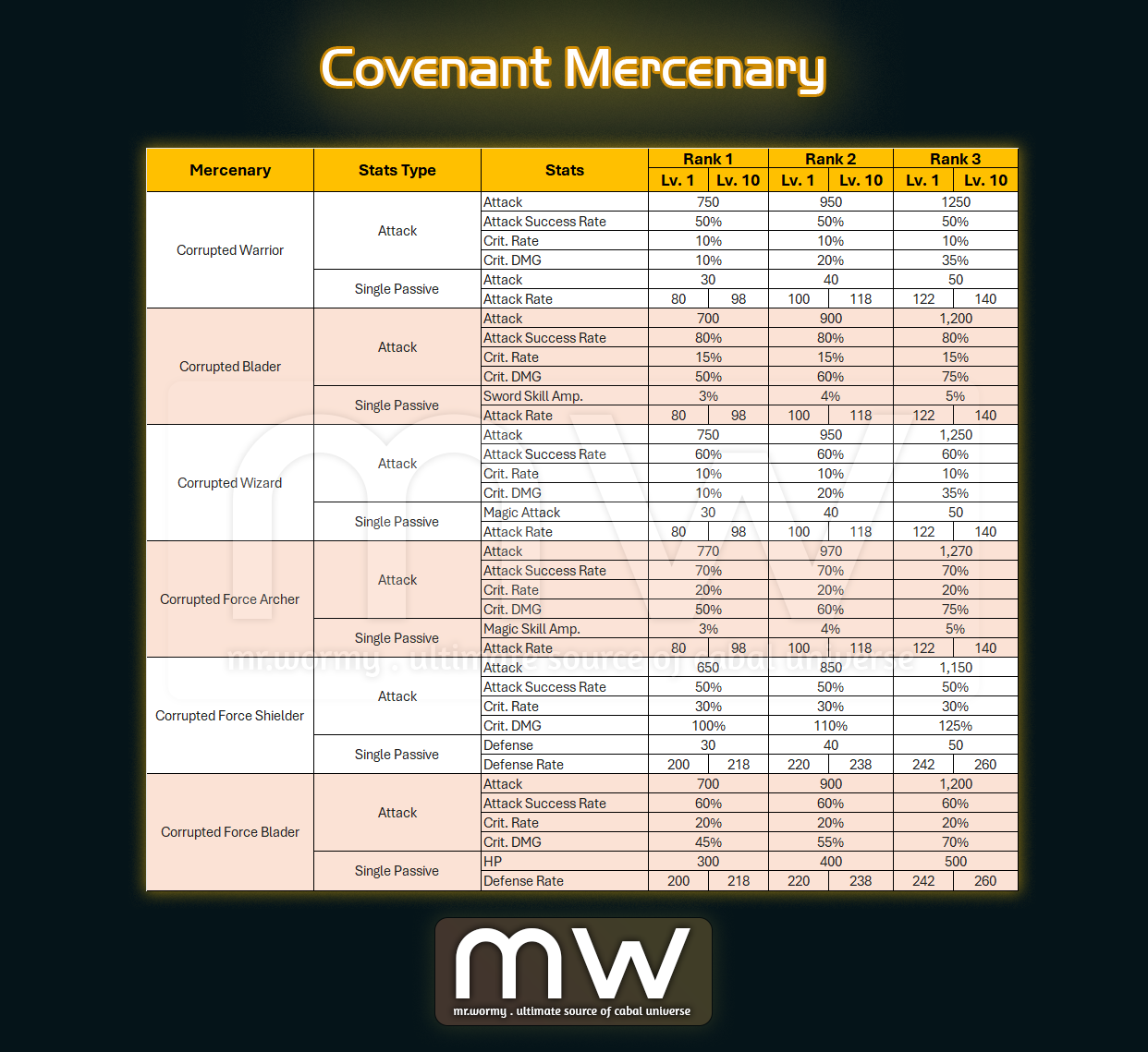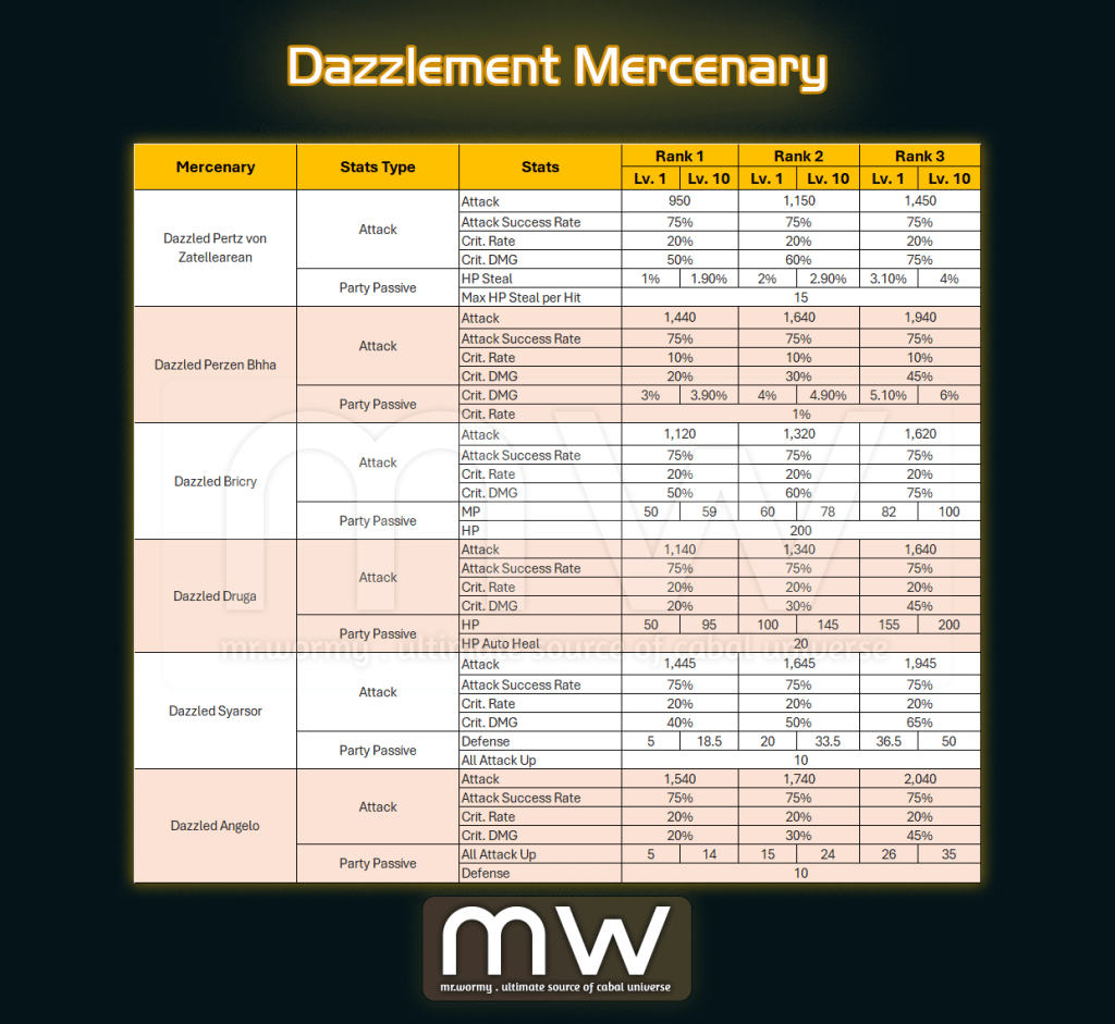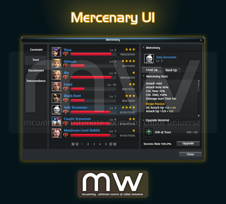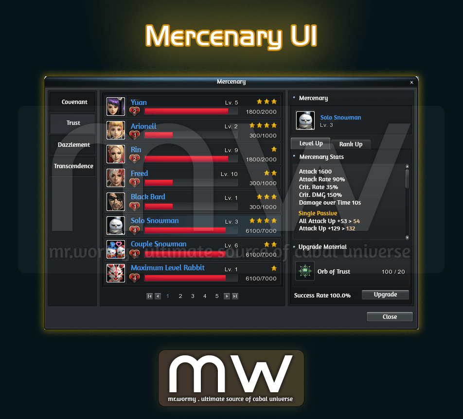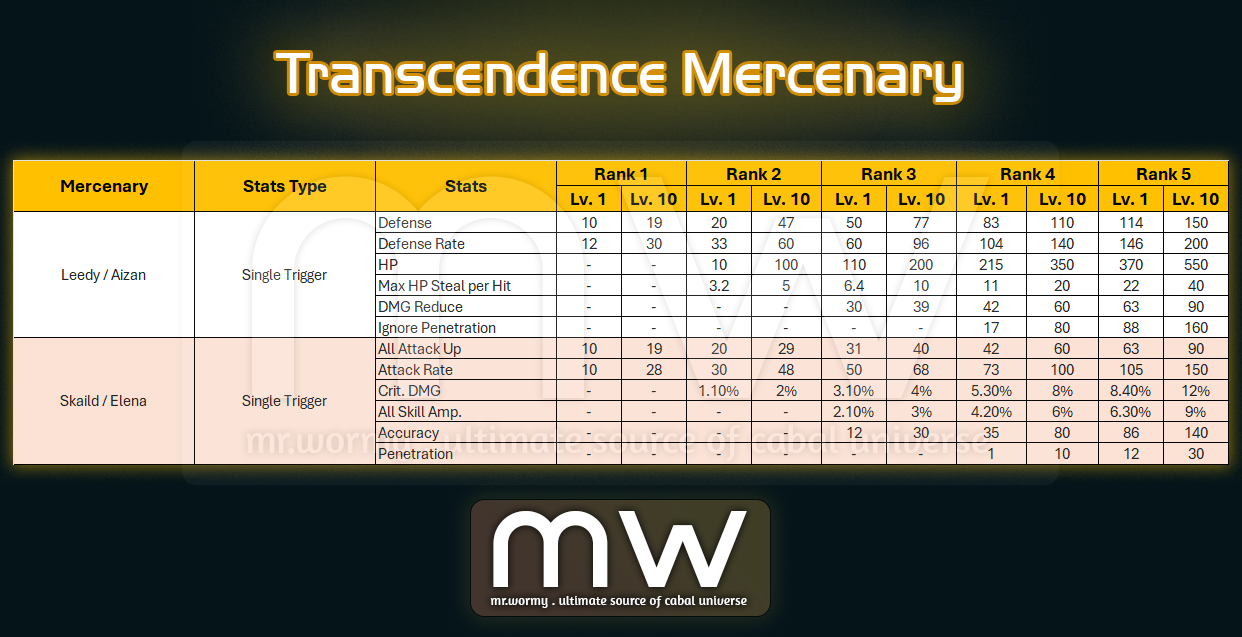 - Mercenary Level / Rank Expansion