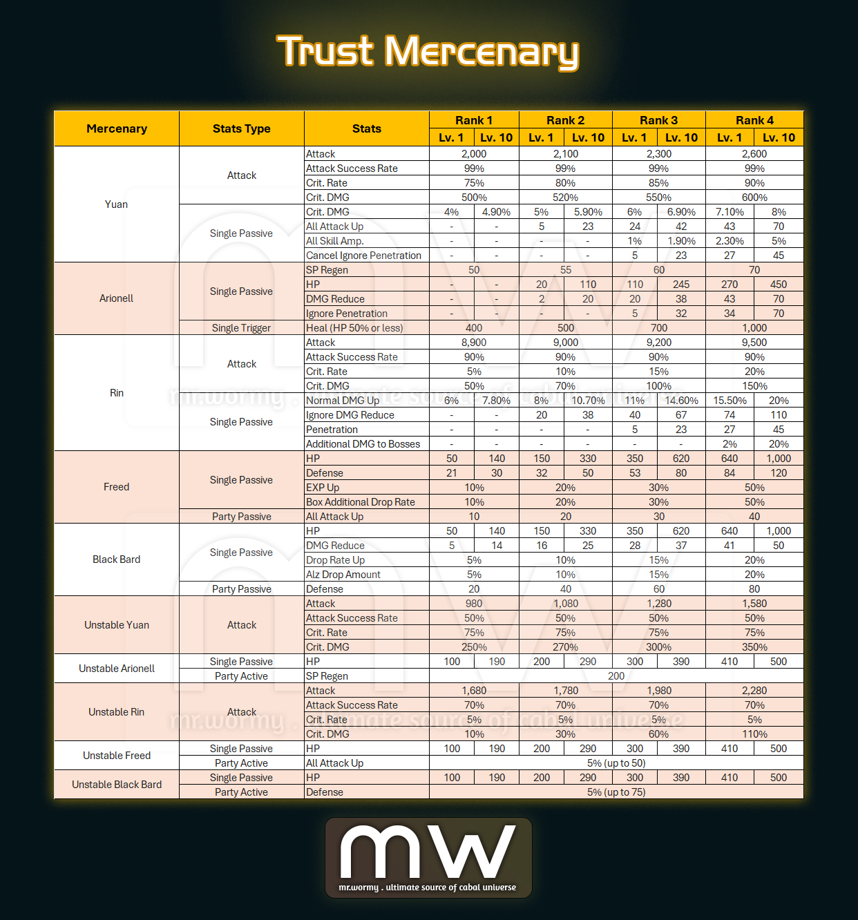 - New Stats for Unstable Trust Mercenaries
