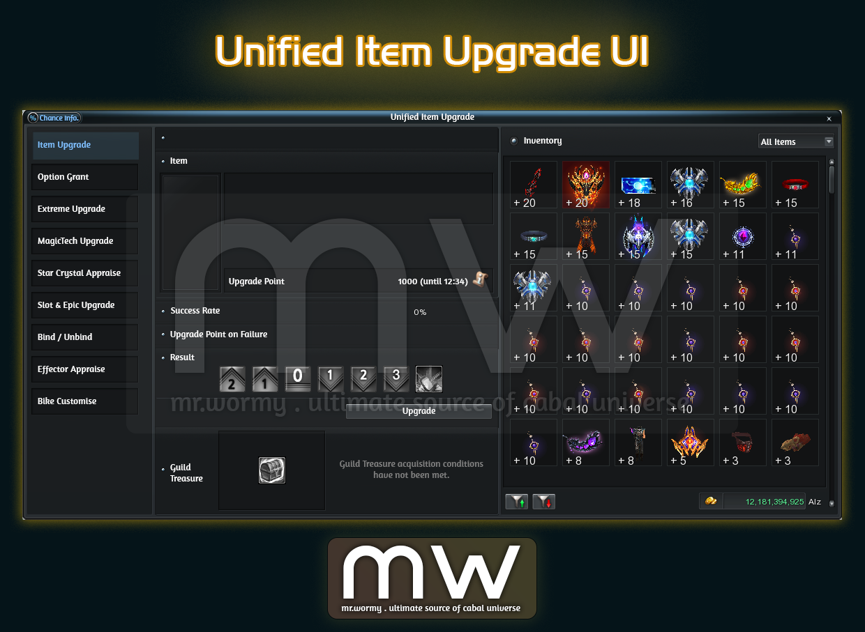 - Cabal Menu > Item > Unified Item Upgrade