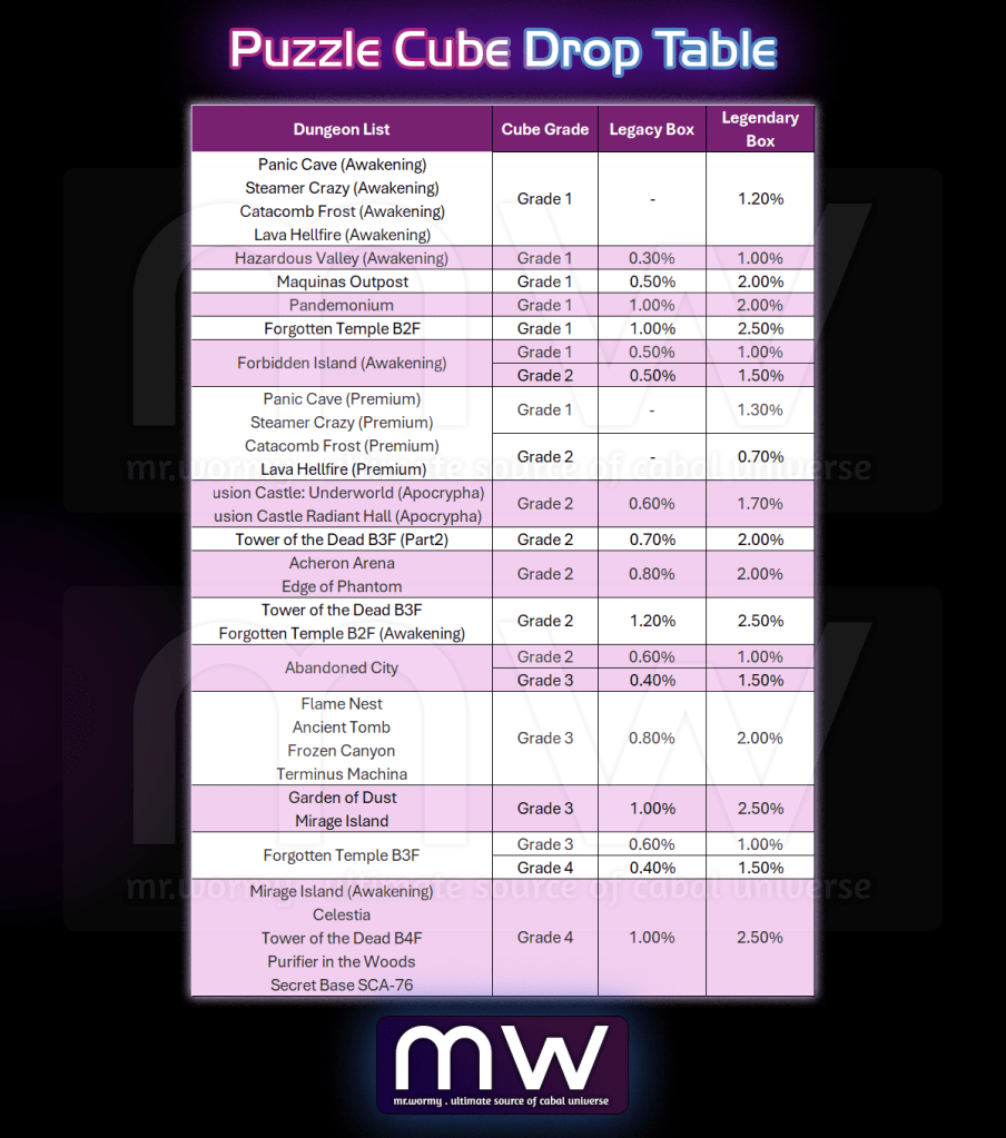 - Puzzle Cube can be obtained from Legacy Box and Legendary Boxes in Dungeons.