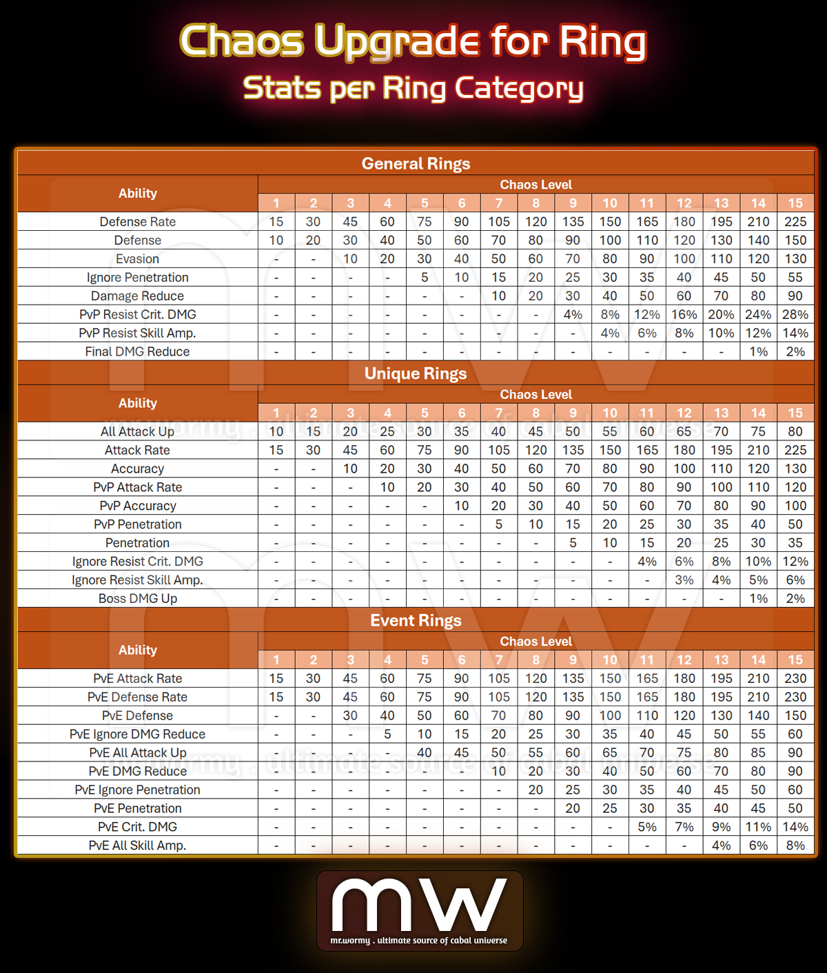 - Event Ring: PvE Defensive & Offensive Stats