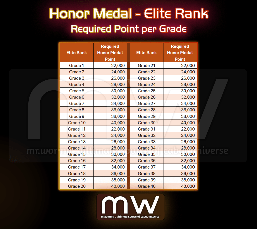 - By obtaining the Honor Medal Point the Honor Medal – Elite Rank will progress