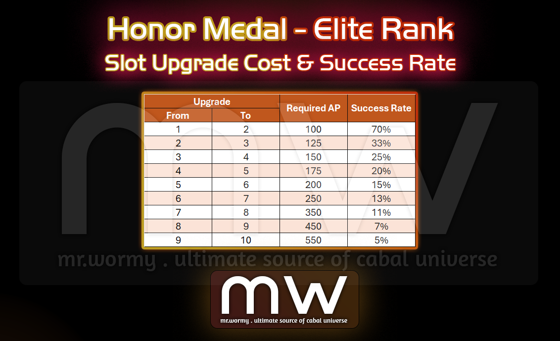 - Elite Point is used for opening slots in Honor Medal – Elite Rank