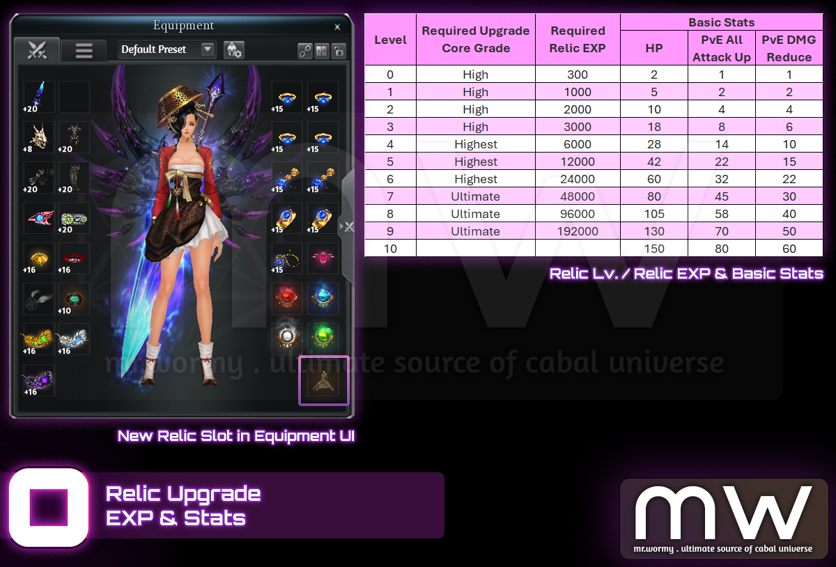 - Relic EXP & Basic Stats of Relic: