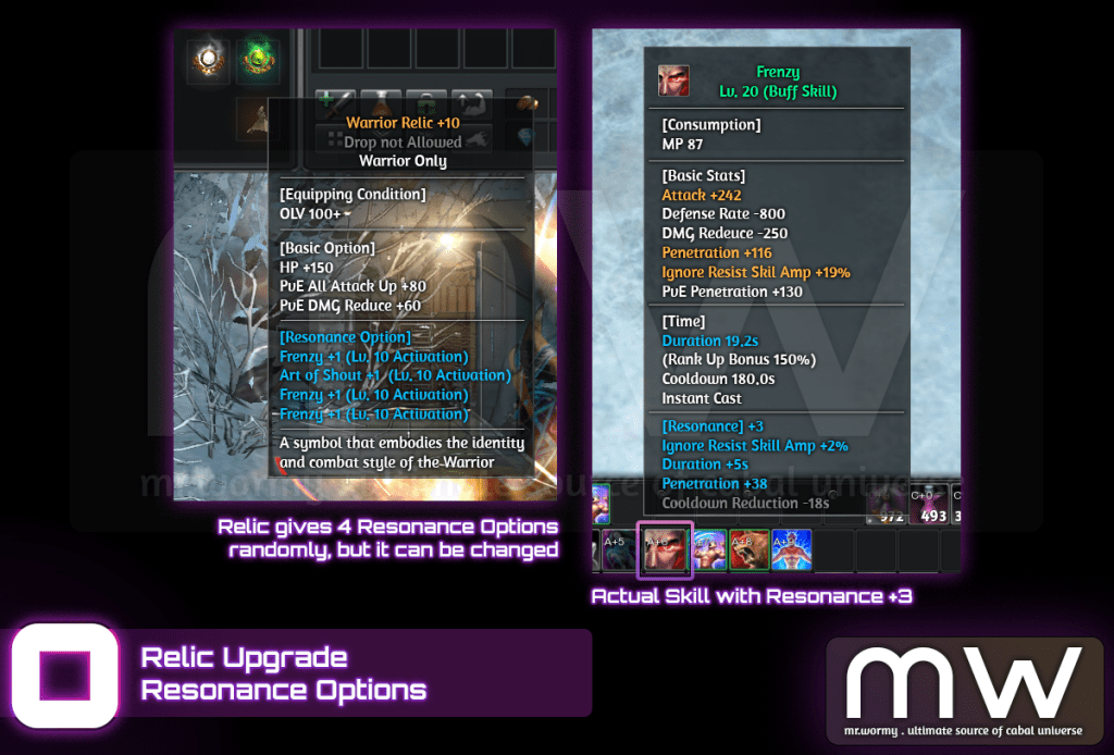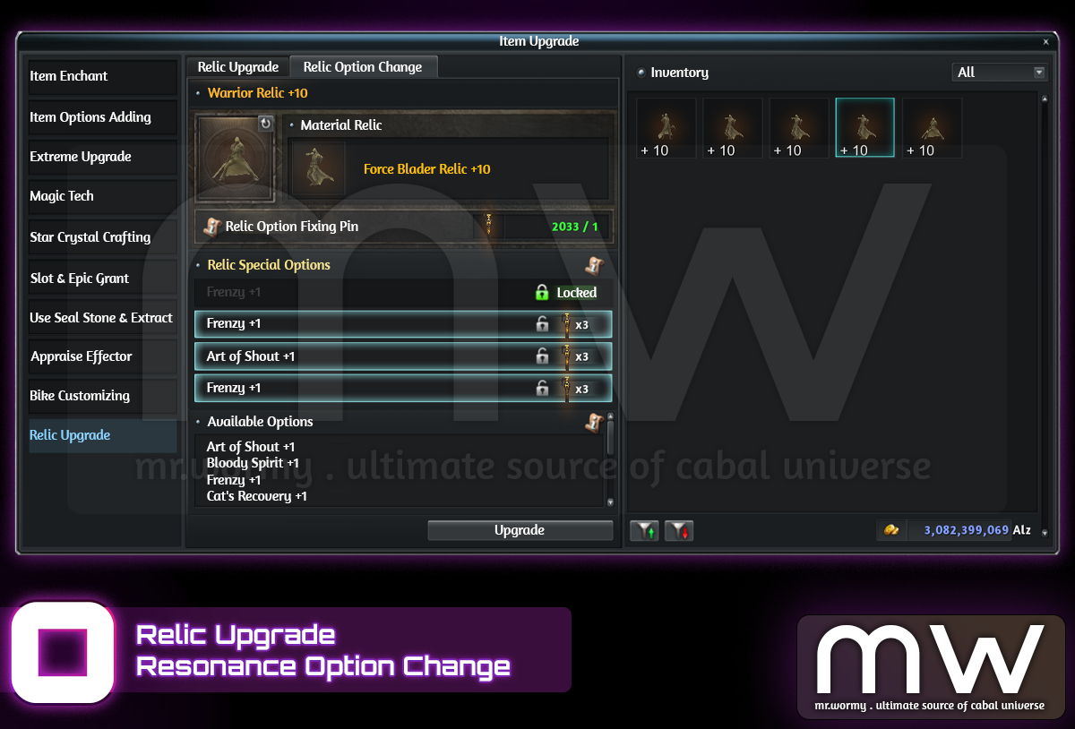- A Relic once reached Lv. 10 can have its Resonance Option to be changed.