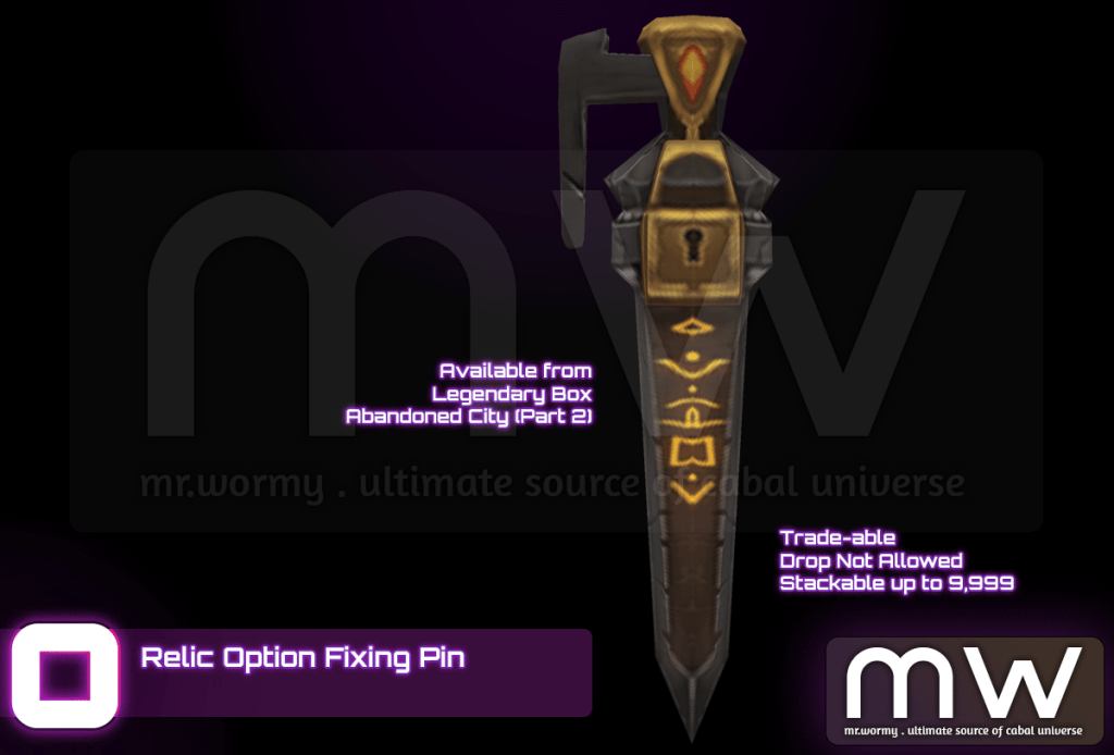 - Relic Option Fixing Pin: