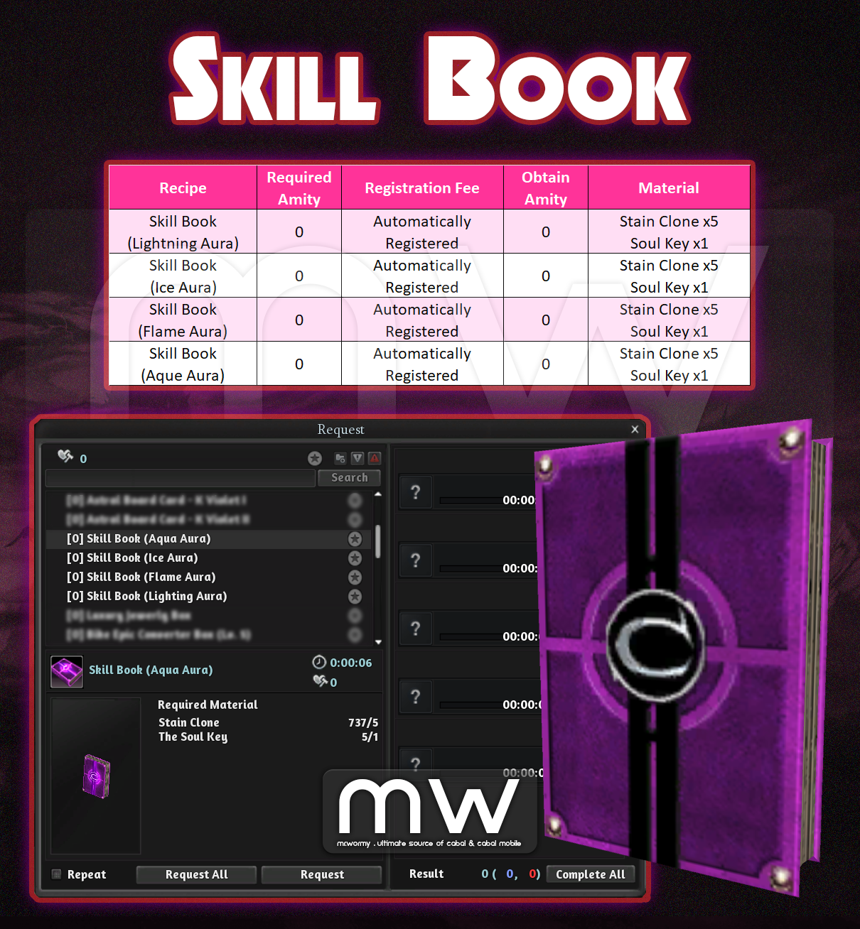 - Skill Books for Aura Mode can be obtained via requesting system at NPC Chloe.