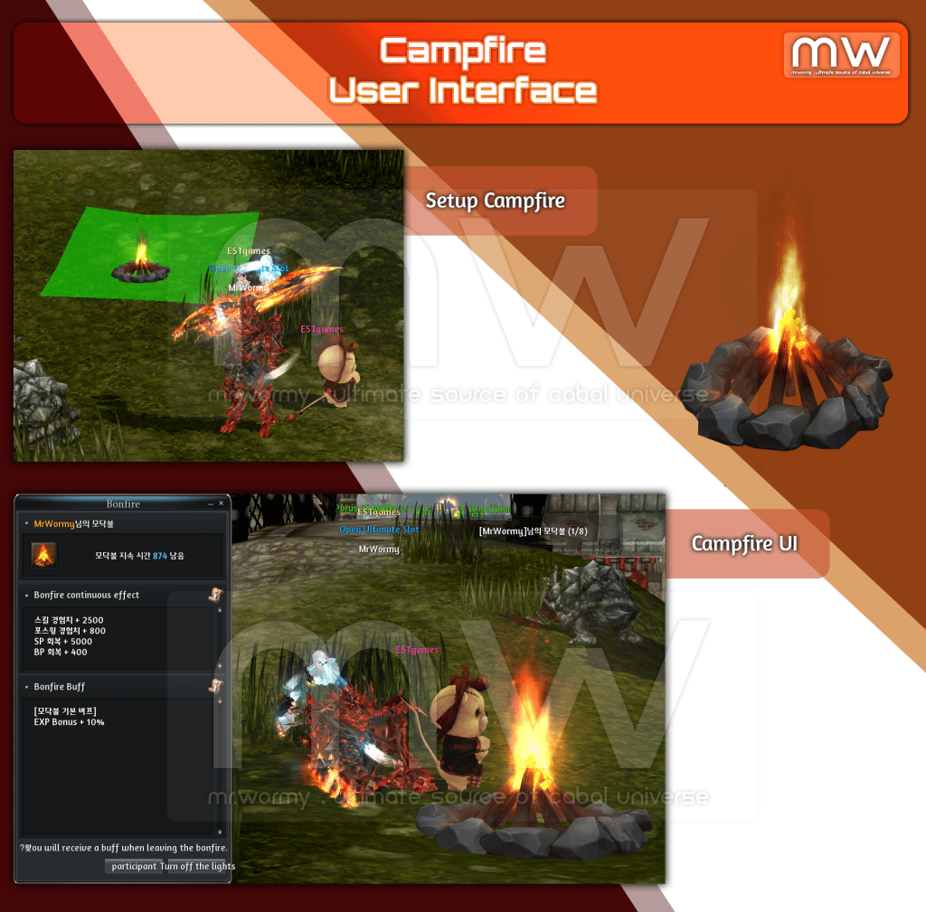 - Campfire is a system introduced in Episode 39 of Cabal for giving special benefits in form of durational buffs for players by participating together with other players even while staying AFK.