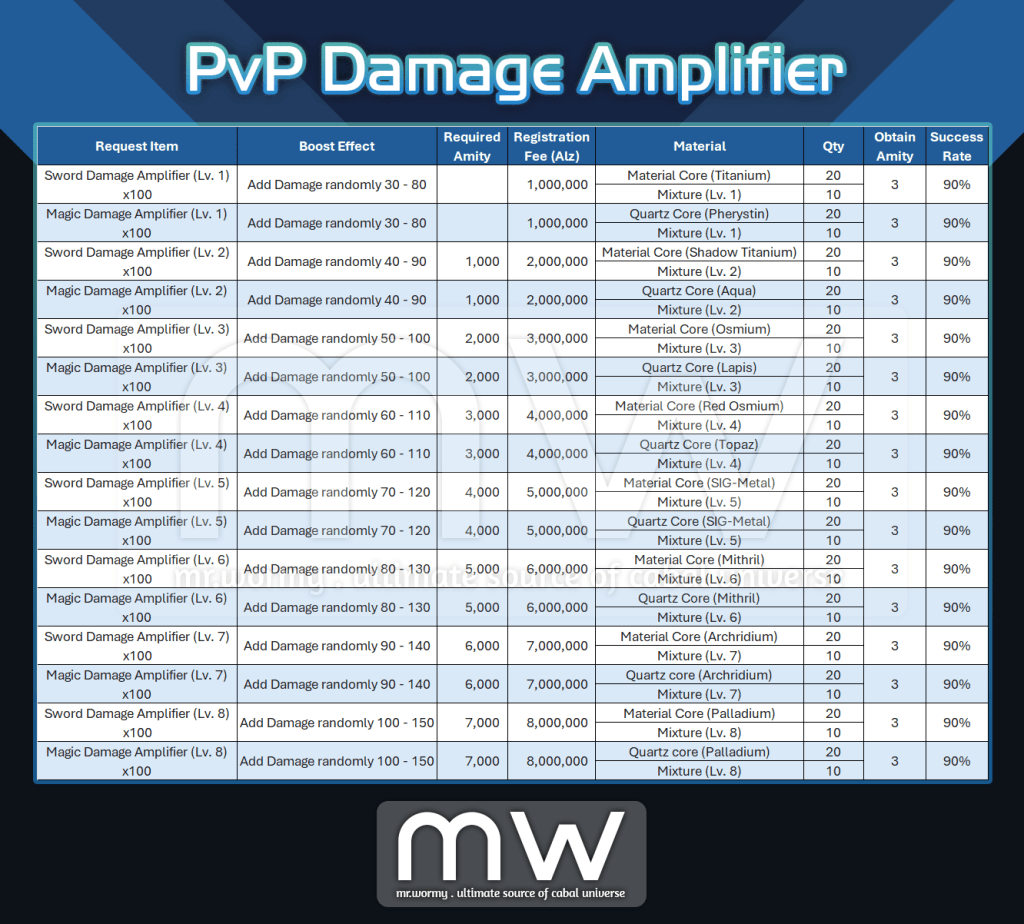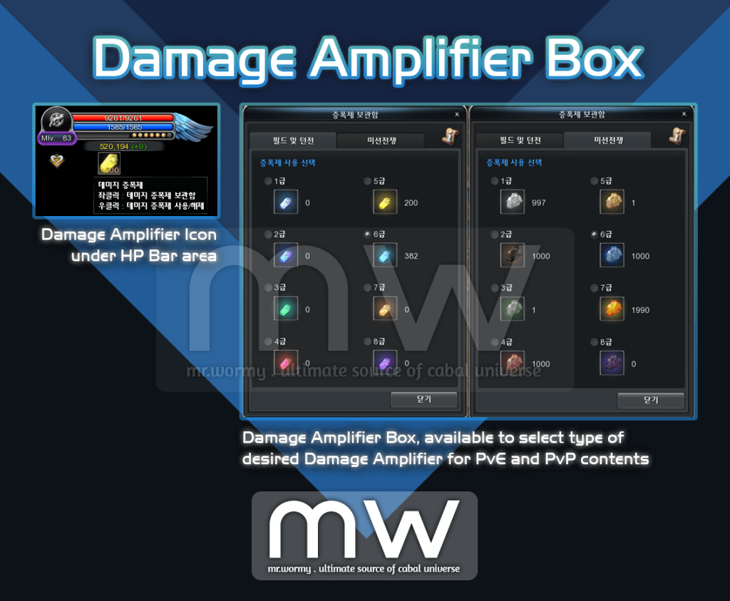 - Registering the PvP Damage Booster into the Damage Amplifier Box must match the character battle style (e.g. a Warrior must have Sword Damage Amplifier registered, not the Magic Damage Amplifier).