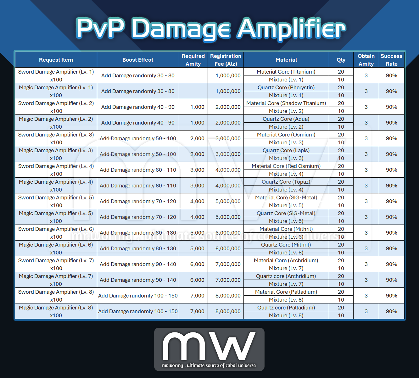 - PvP Damage Amplifier is split into 2 types: Sword Damage Amplifier and Magic Damage Amplifier.