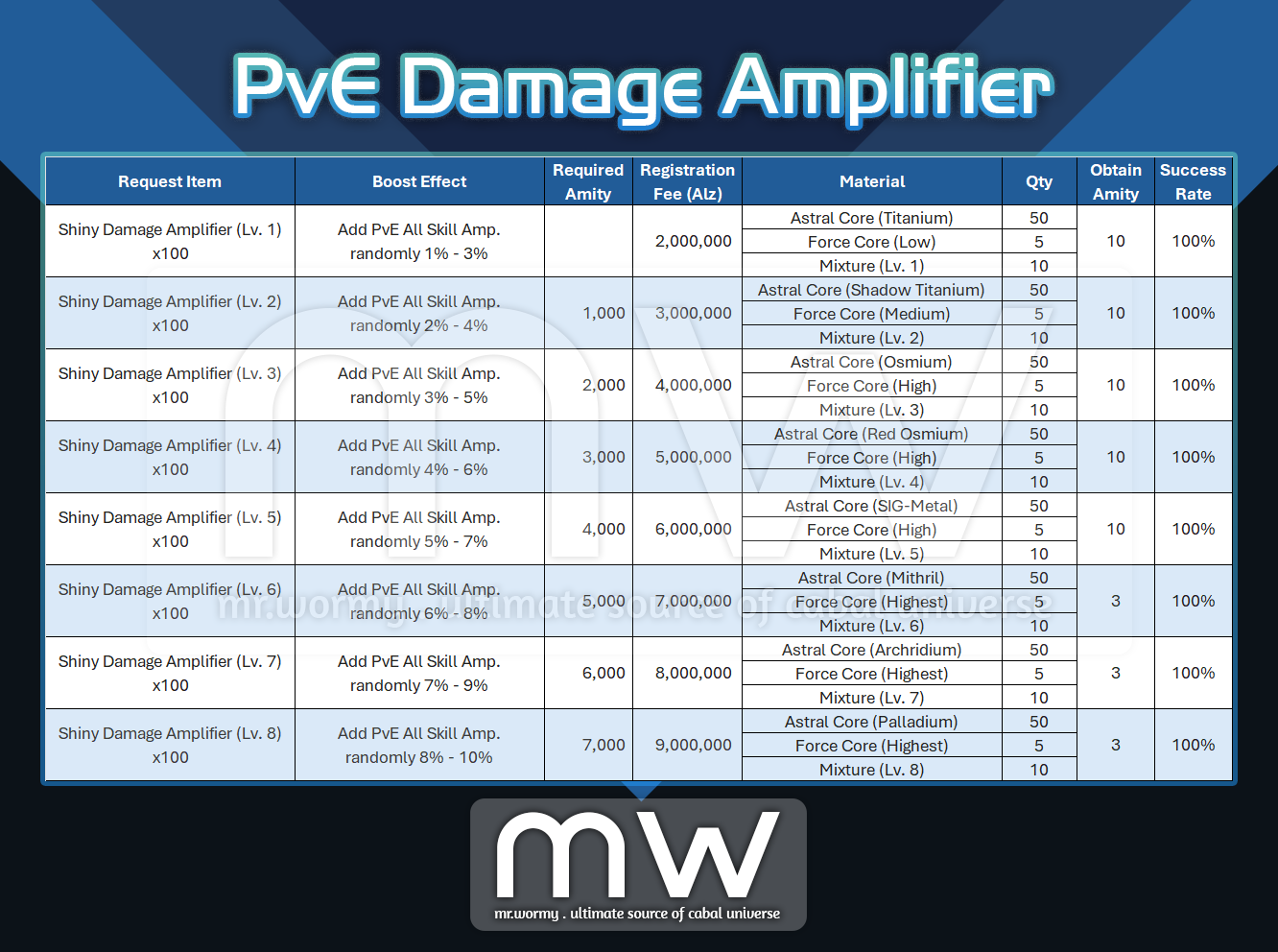 - Shiny Damage Amplifier is applicable for outside Mission War (for PvE content).