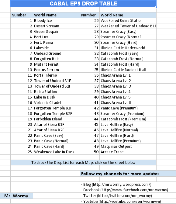 Have you ever wondered, what could be dropped here, what could be dropped there? Let me help you 🙂 The first Drop Table in English for EP9 – Arcane Trace and it introduces as Online Excel Format, you can check it everytime, everywhere !