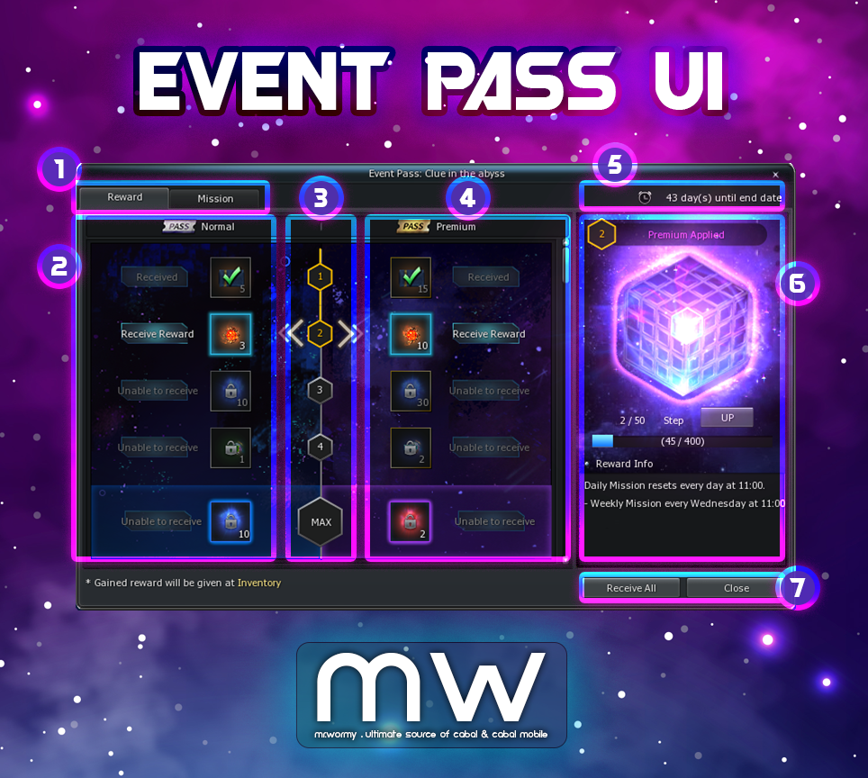 - When a mission is completed and point is obtained, the Stage Score will be granted and the gauge in the Event Pass UI will be increased.
