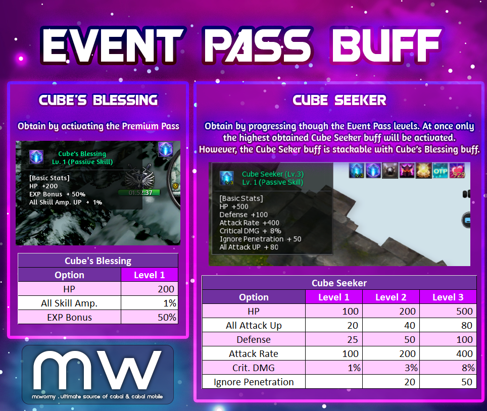 - However, buffs from the rewards can be stack along with the “Cube’s Blessing” from Premium Event Pass.