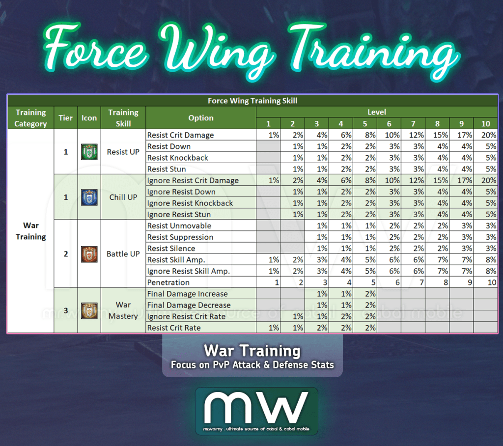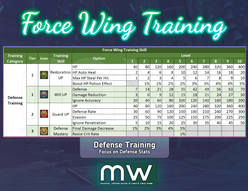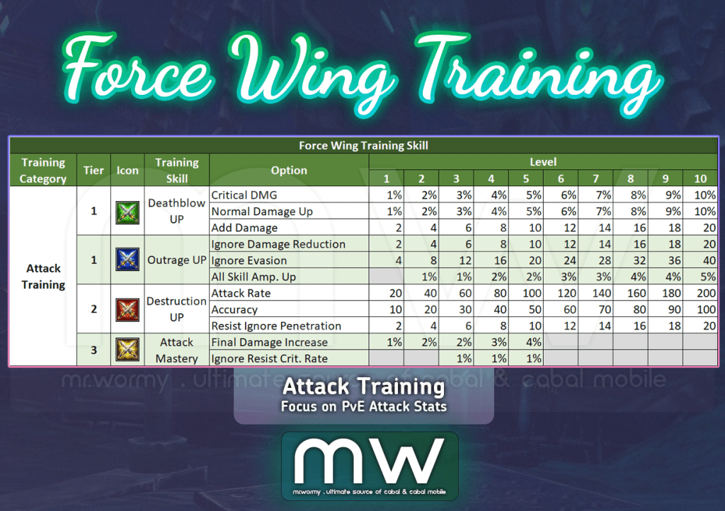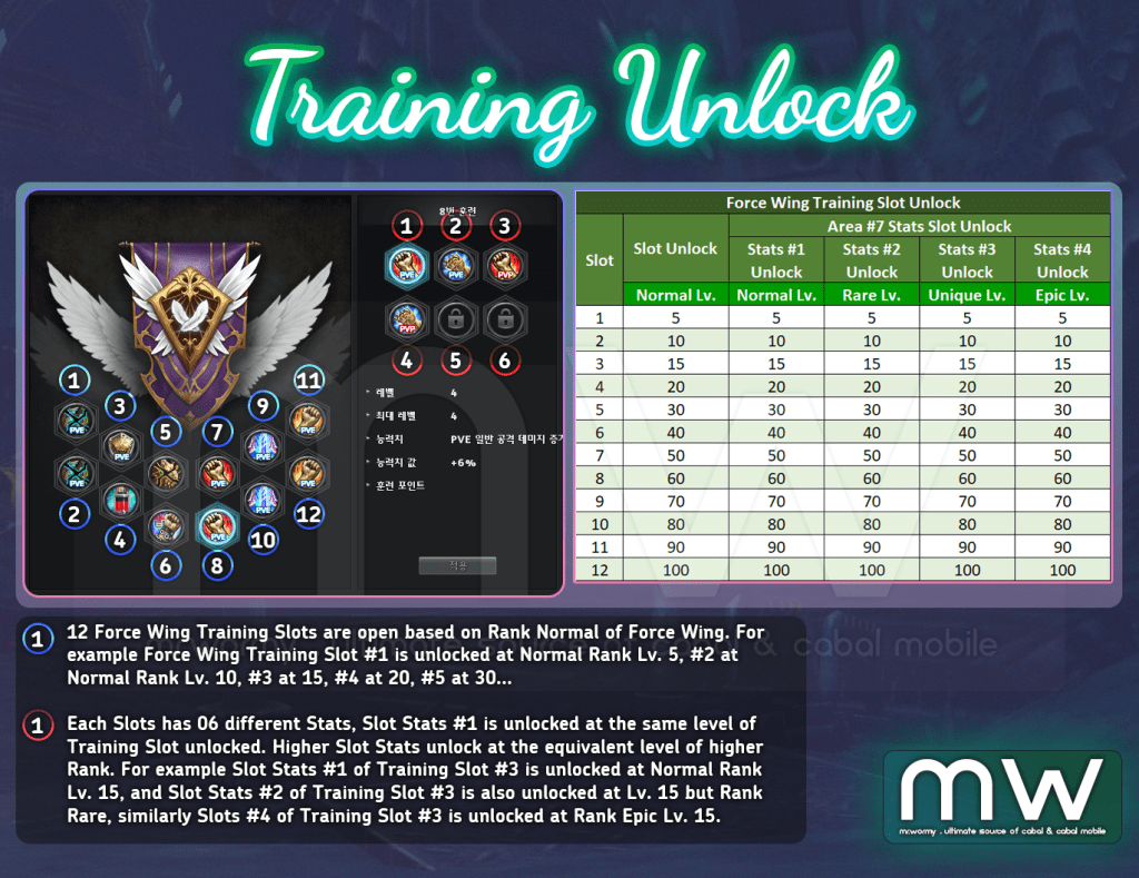 - When Force Wing level at 100, maximum training point amount is 5