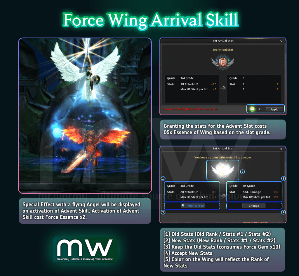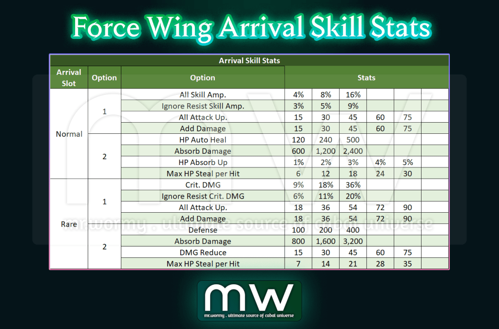 - Force Wing Arrival Skill was introduced in Episode 33, basically it’s a special skill that hold multiple stats and you can reroll for a good set of stats.