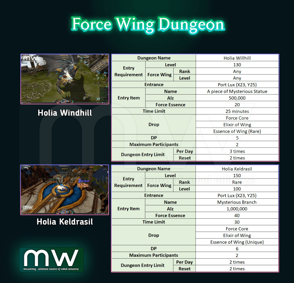 - Force Wing Dungeon is a special dungeon type that allows with Force Wing can be entered.