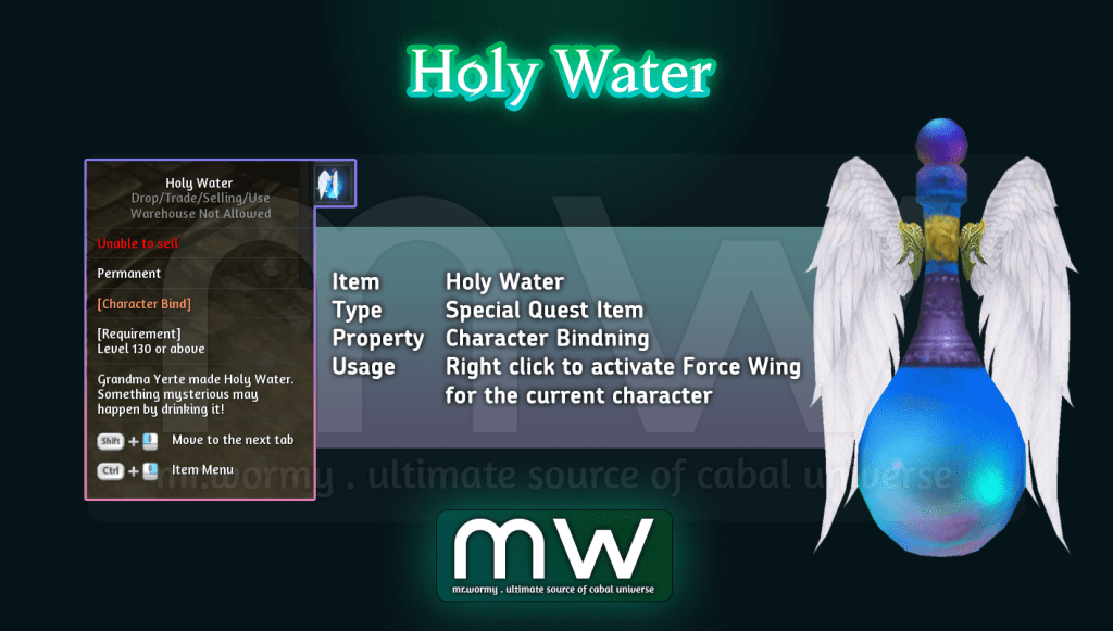 - Reward: Holy Water (character-binding)