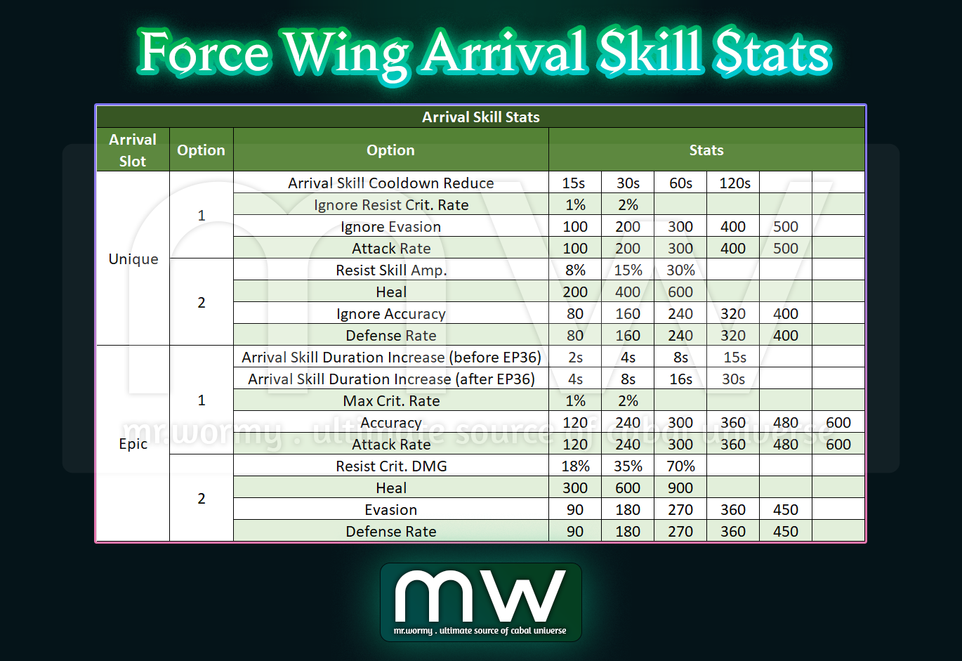 - Force Wing Arrival Skill was introduced in Episode 33, basically it’s a special skill that hold multiple stats and you can reroll for a good set of stats.