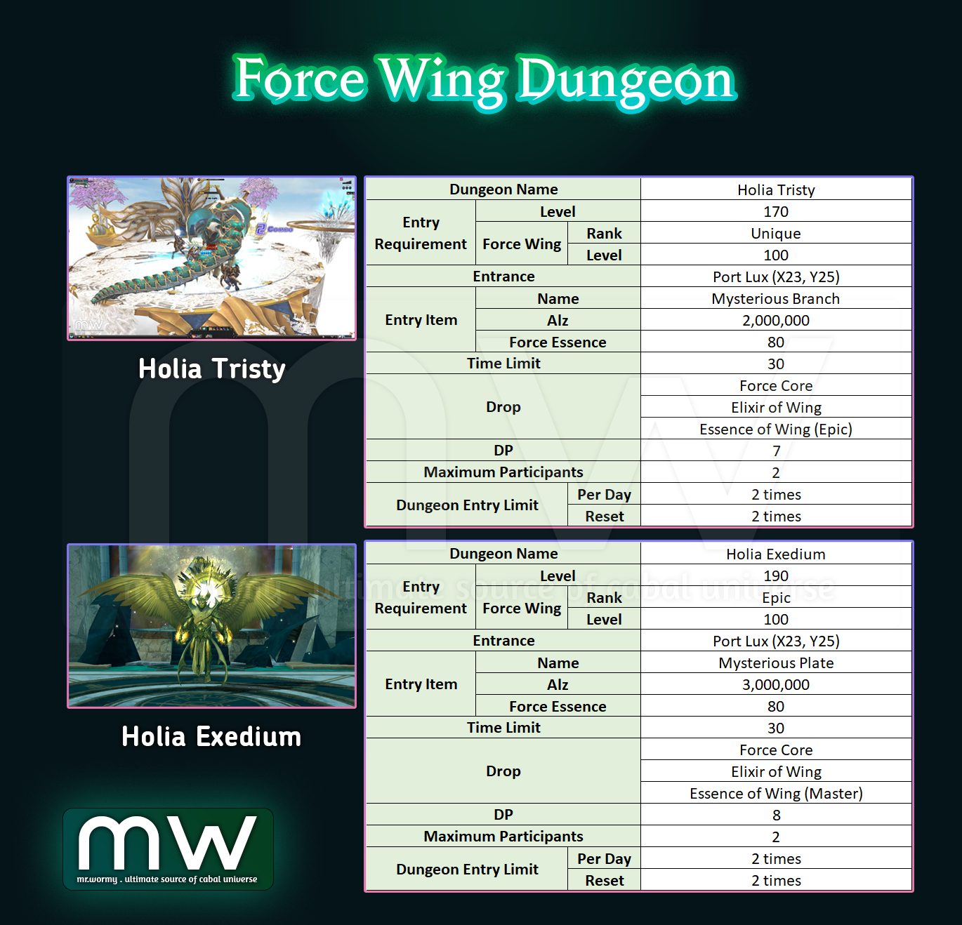 - Force Wing Dungeon is a special dungeon type that allows with Force Wing can be entered.