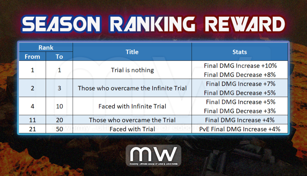- Season Participation Reward: Will be rewarded for all participated characters. Applicable only in the season.