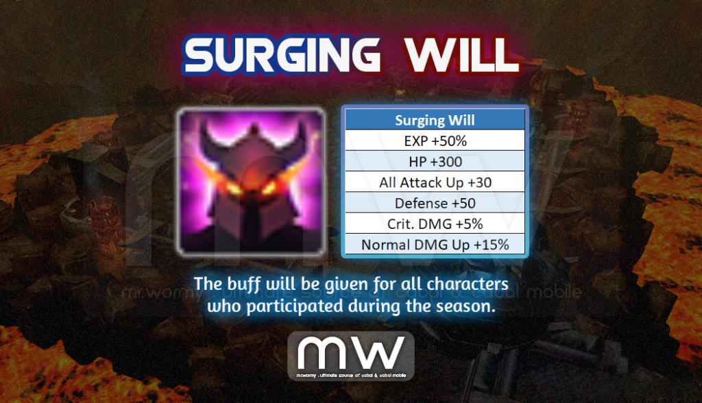 - Characters who participate the Season, will get exclusive buff. Buff will be applied only for character who participated, and in the season that character participated.