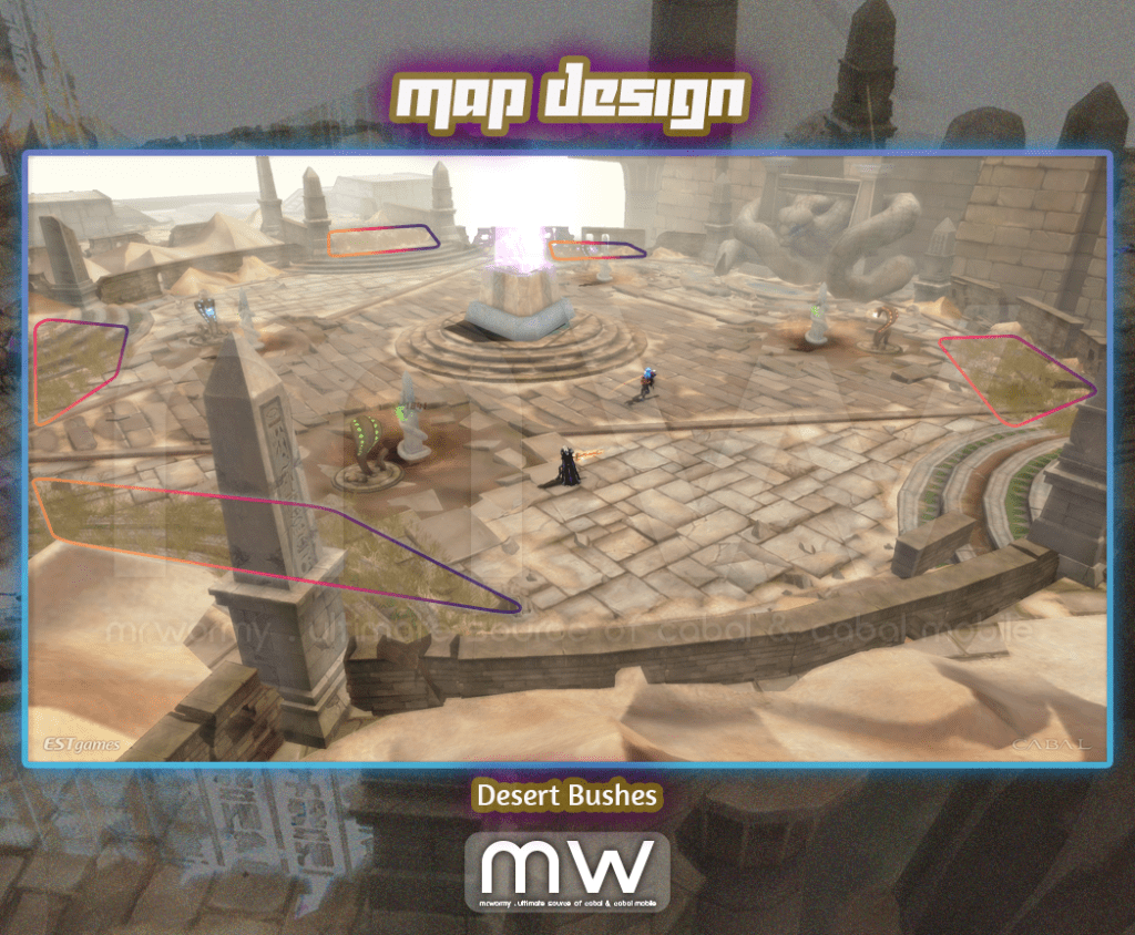 - Players can hide inside the Desert Bushes, by hiding in those area monsters and players from opposite nation cannot target and hit your character.