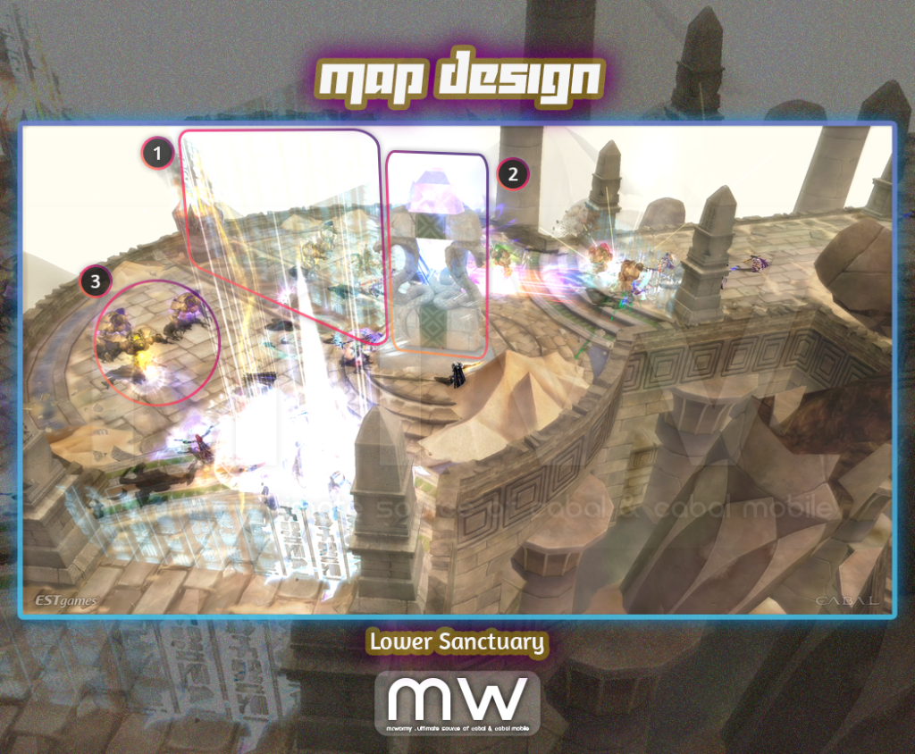 - [1] There is a gate blocking in the middle of the Lower Sanctuary, so that there is no PvP activities can be done.