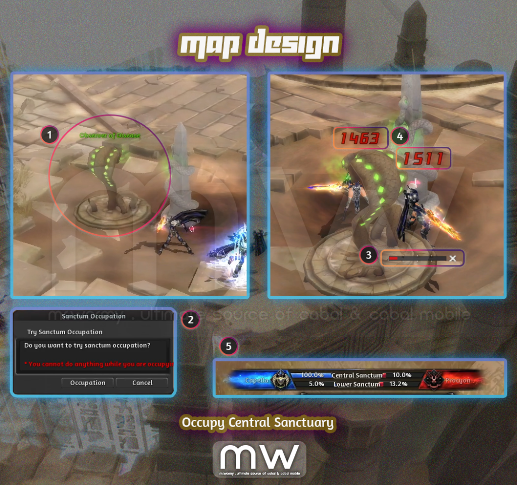 - When a nation occupies the Central Sanctuary fully (100% in the Central Sanctuary gauge), special boss “Agent of Observer” will be spawned near the gate if the opposite nation.