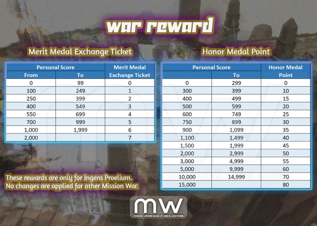- Additional War Rewards: