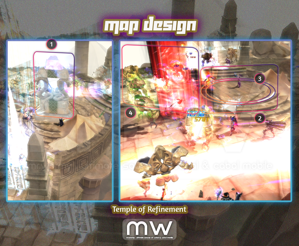 - If the “Temple of Refinement” got destroyed, a timer will start and showing on the ground with white colour, “Temple of Refinement” will respawn when timer ends.