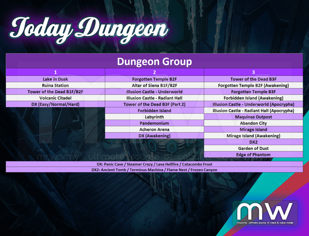 - “Today’s Dungeon” is a new feature added in Episode 32, everyday a new set of dungeons will be selected from 3 different groups as the featured dungeons.